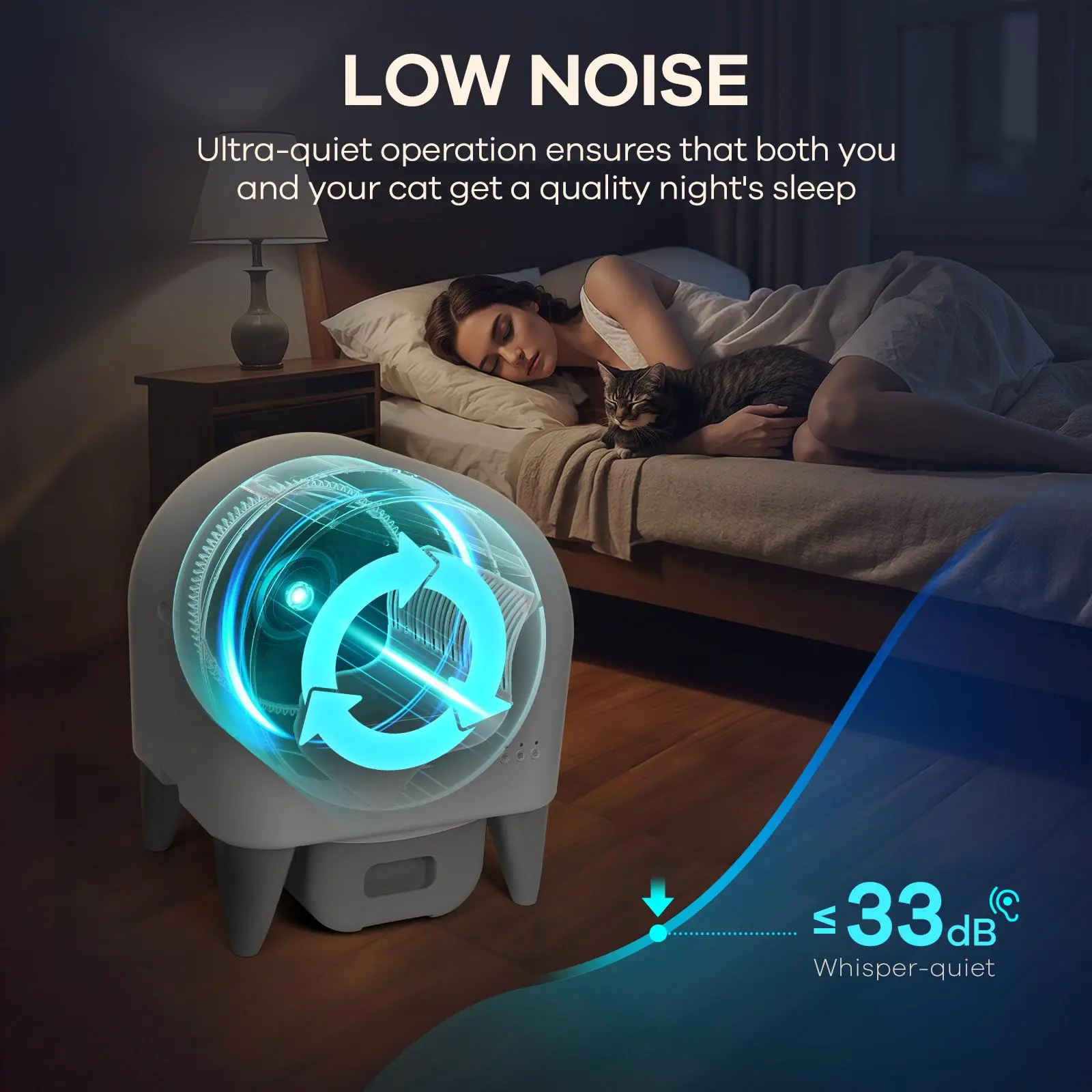 ·Ultra-Quiet Operation: Designed for whisper-quiet performance, this litter box maintains a peaceful home environment, ensuring undisturbed rest for both you and your cat, day or night.