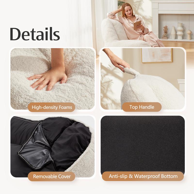 ·User-friendly design: With two zippers on the bottom of the lazy sofa chair, the fluffy chair's cover can be removed for convenient cleaning and maintenance, ensuring the sofa remains aesthetically pleasing and hygienic for a long time. Non-slip fabric on the bottom of the sofa, which provides a stable and secure seating experience. Equipped with a handle, the bean bag chair sofa can be easily moved to desired locations within your home, allowing for flexible use in different areas.