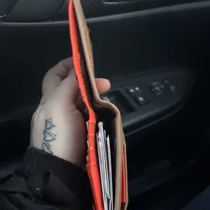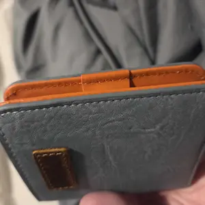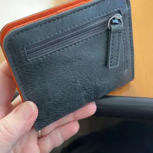 Didn't realize the orange would be so prevalent on the inside but its still cute, also larger than expected but still fits in your back jean pocket well.