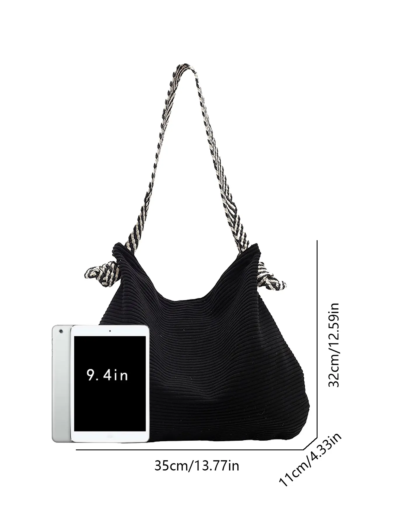Tote shoulder underarm bag large capacity cloth bag crossbody commuter tote bag, with black and white striped wide shoulder strap, Casual lightweight bag, Crossbody shoulder bags, suitable for daily commuting office workers student party