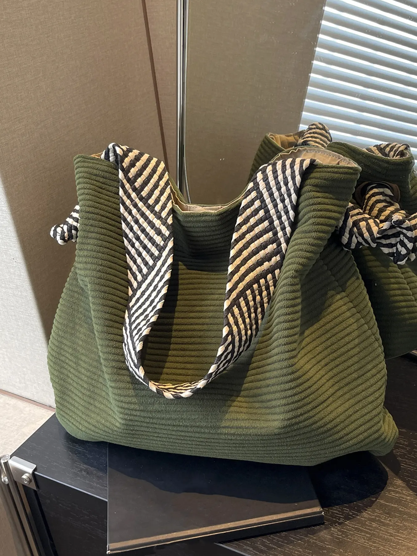 🍃 Who’s Obsessed with This Olive Green Corduroy Tote? That Rope Strap Is Chef’s Kiss! Drop a 🔥 if you’d rock this! #totebag #shoulderbag #whatsinmybag #fallfreshness #tiktokshopblackfriday