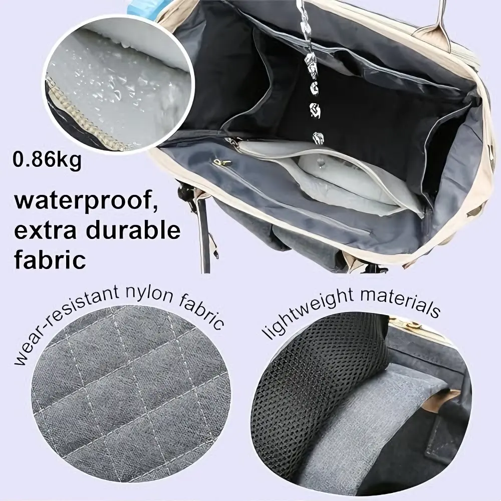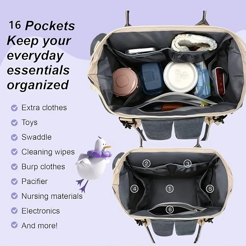 ·Features 16 thoughtfully placed compartments, including insulated bottle holders, a quilted front pocket, and a wide main compartment with separate storage areas for mom and baby.