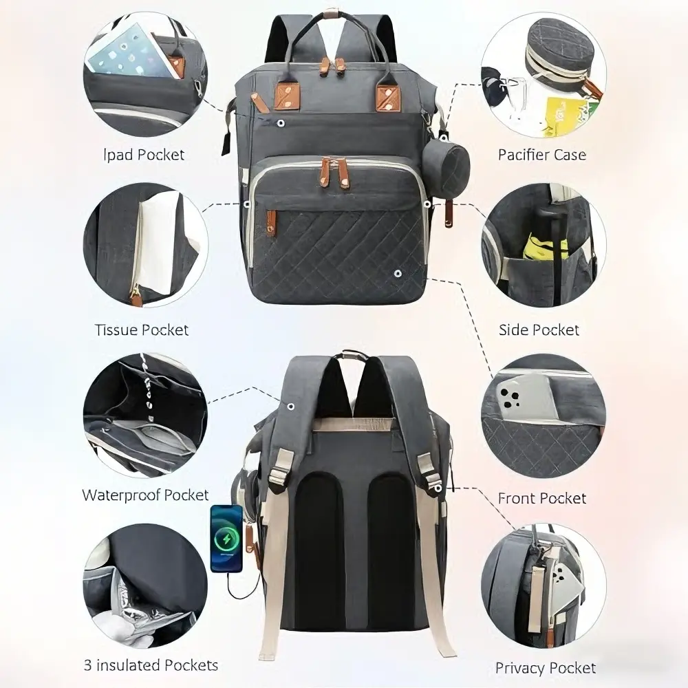 ·Stay organized and stylish with this multi-functional diaper backpack, designed for modern moms and dads.