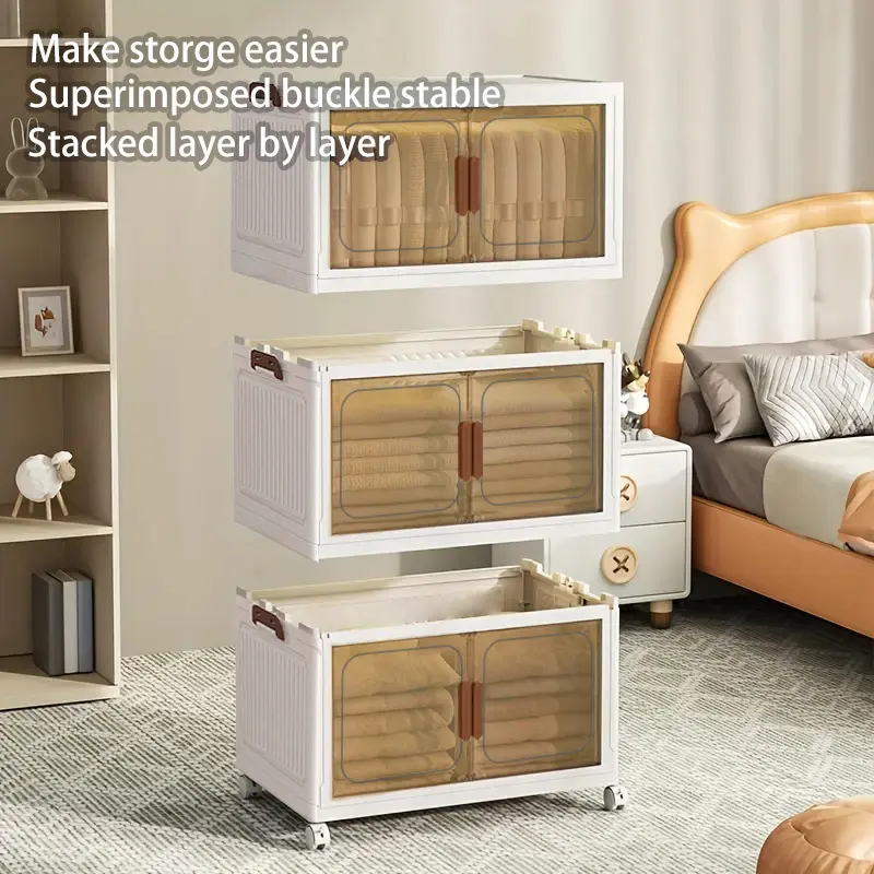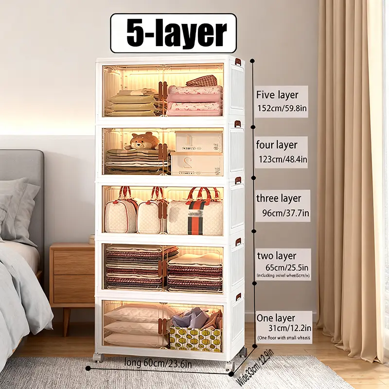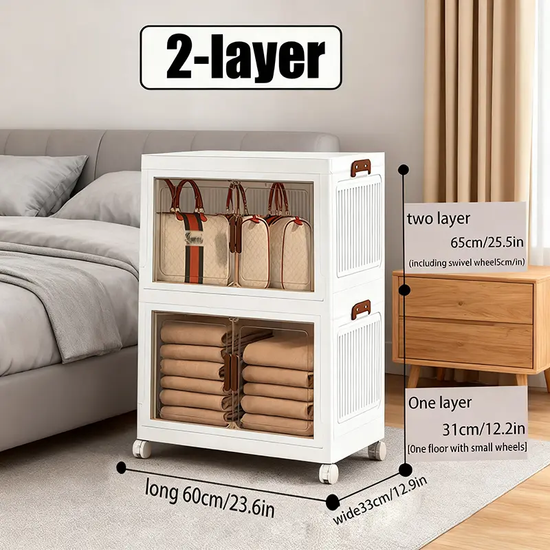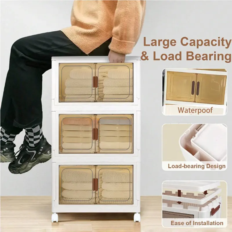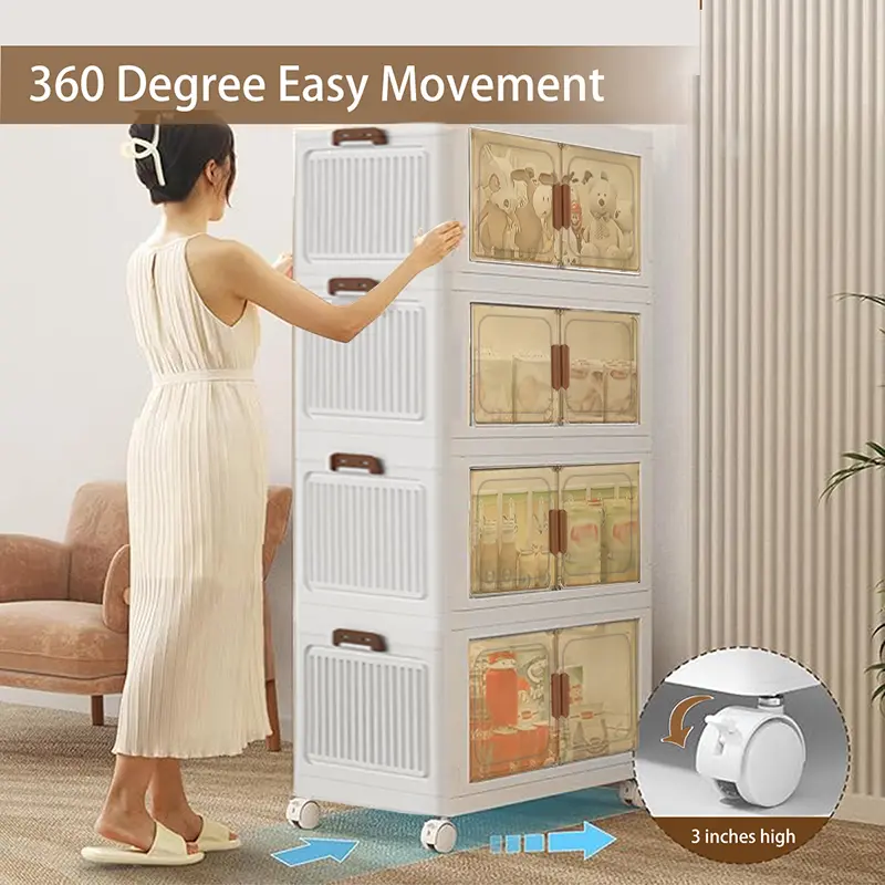 Large capacity foldable Locker with wheels and transparent door - Portable plastic storage case with multiple compartments, space saving design for toys, clothing, office and dorm supplies, cabinet storage.