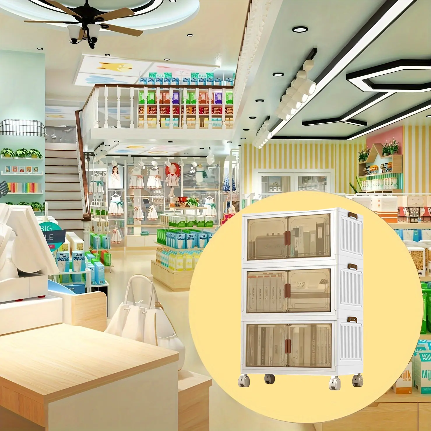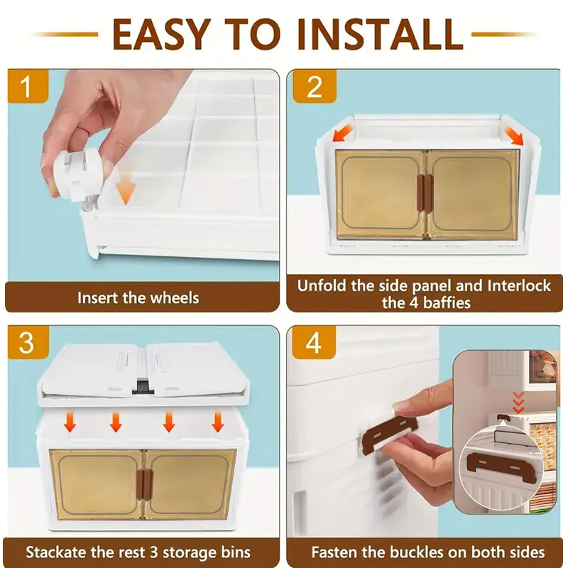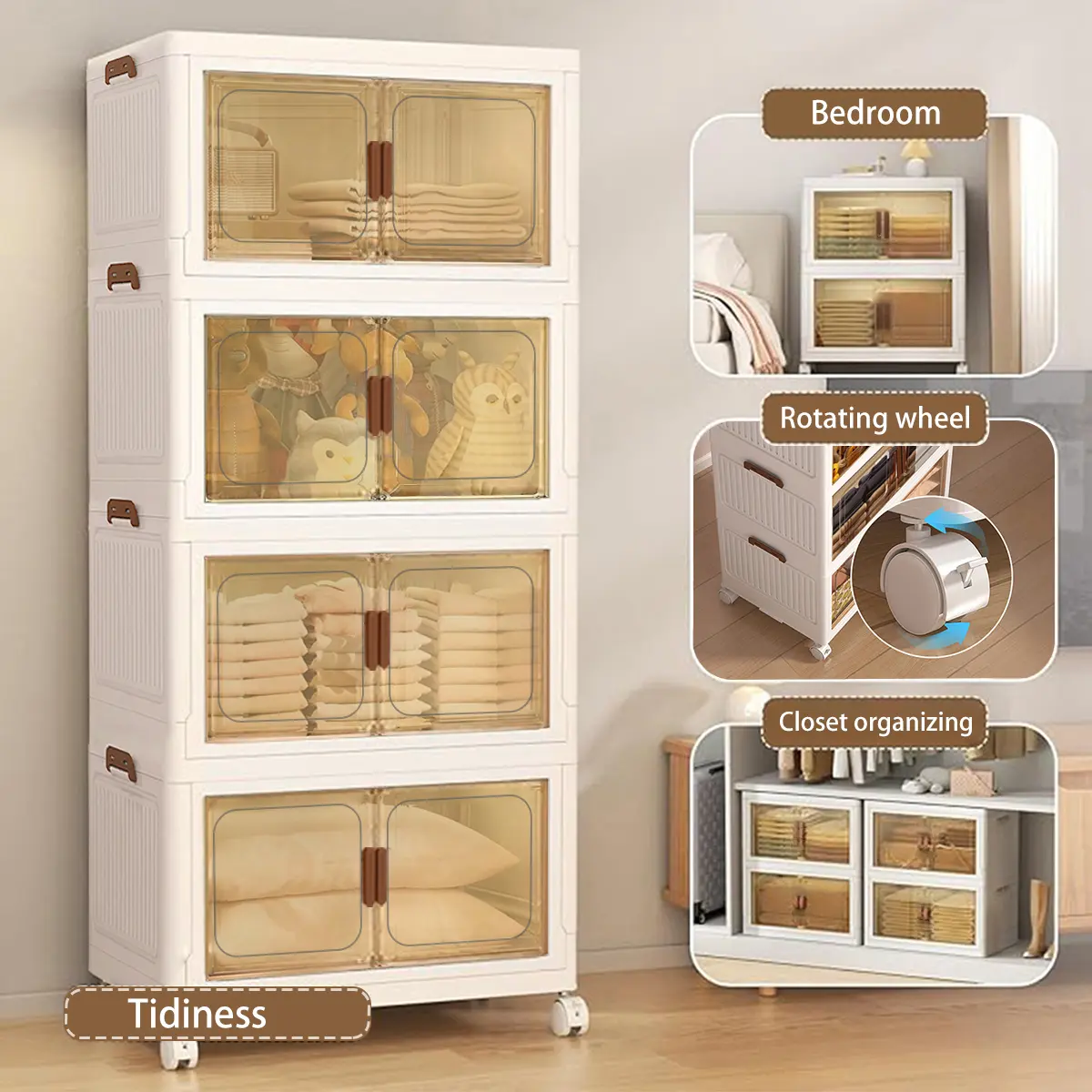 Large capacity foldable Locker with wheels and transparent door - Portable plastic storage case with multiple compartments, space saving design for toys, clothing, office and dorm supplies, cabinet storage.