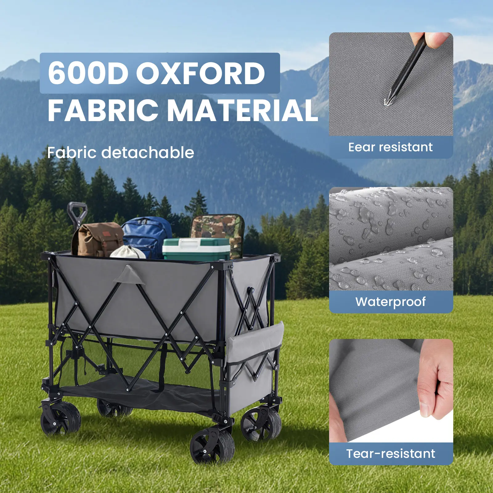 ·Premium Materials - Made from high-quality 600D Oxford fabric, this beach wagon is durable, long-lasting, and resistant to water, tears, and wear. Enjoy outdoor activities without worrying about harsh weather conditions affecting your cart