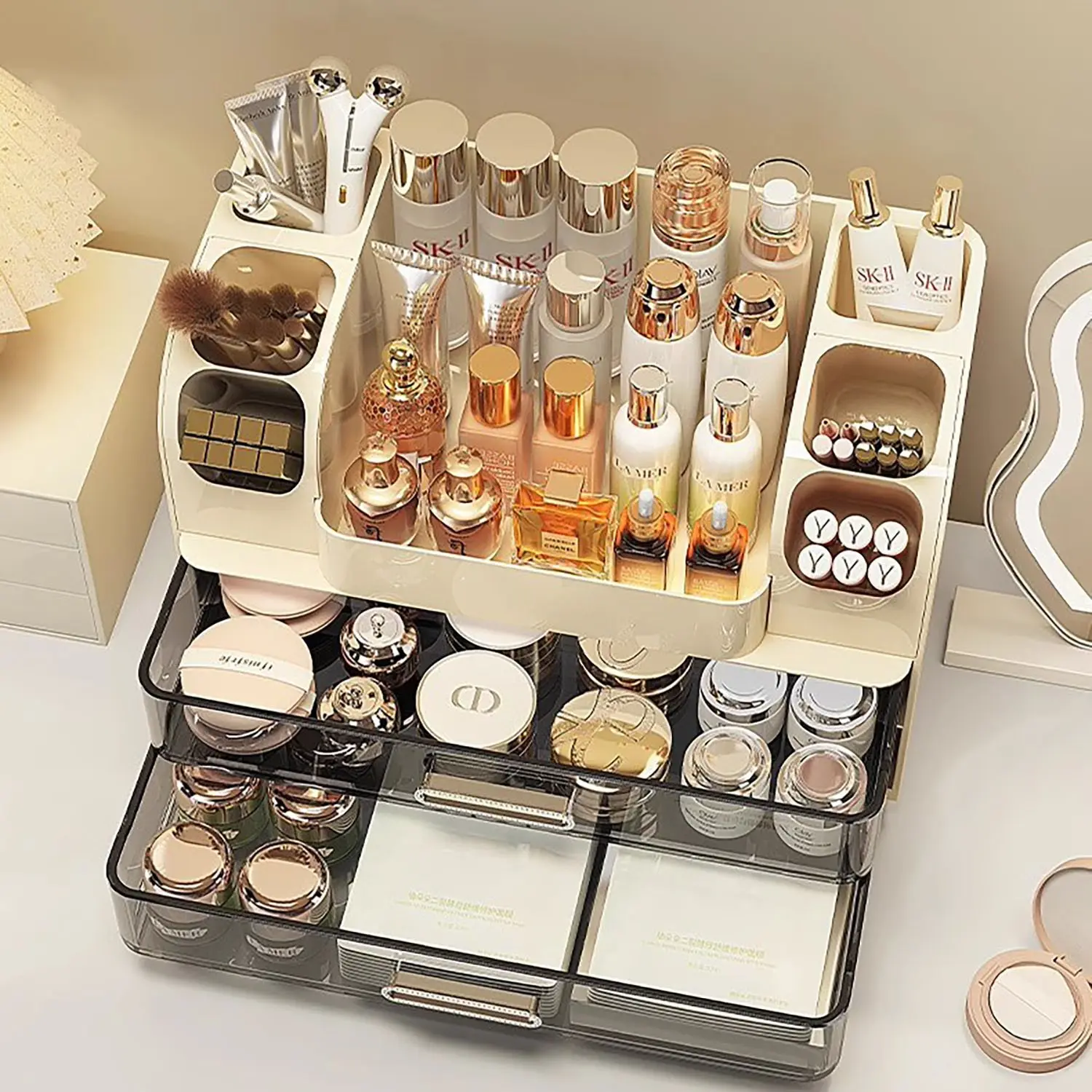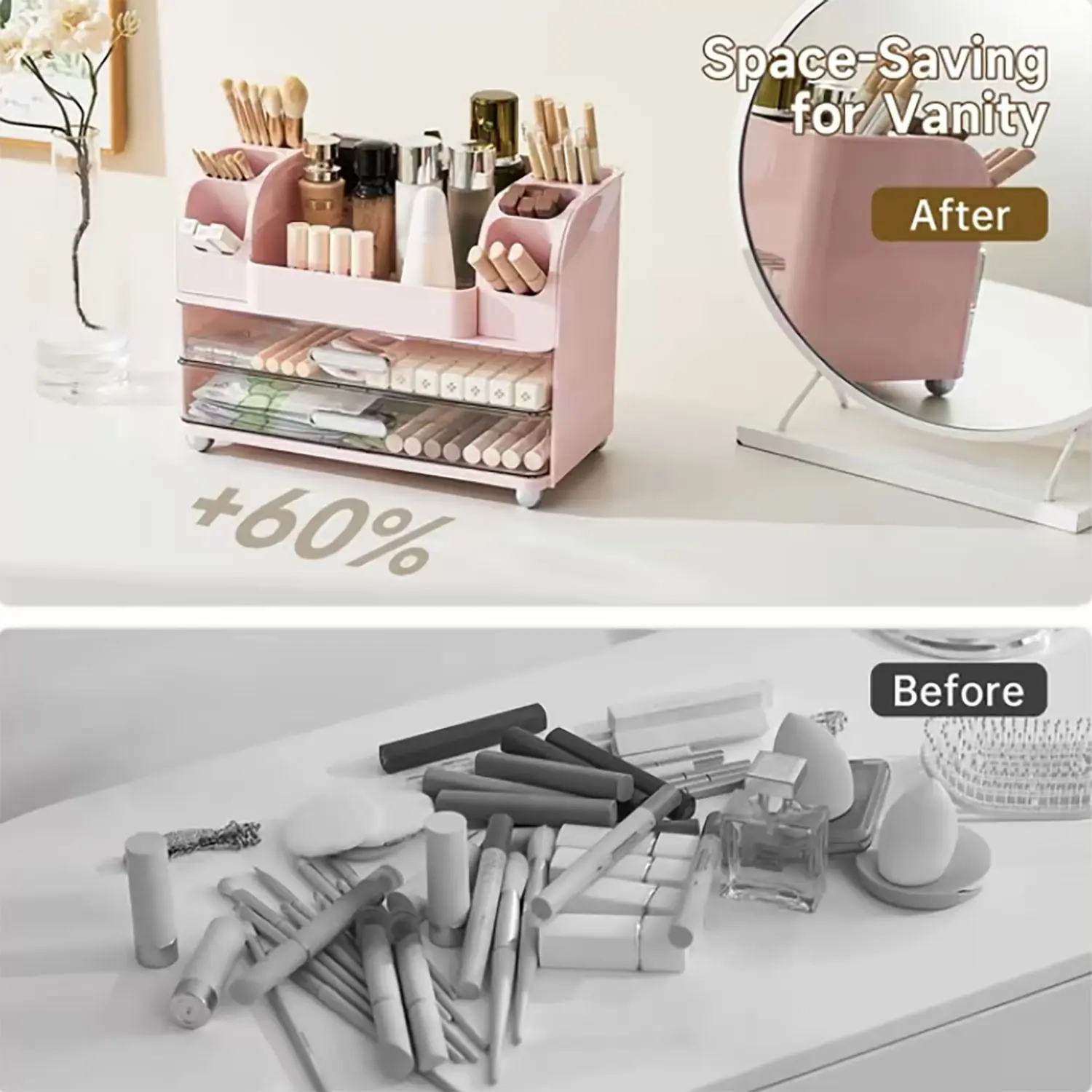 Large Capacity Makeup Organizer Box, Multifunctional Storage for Brushes, Lipsticks, Eyebrow Pencils, and Mirror, Perfect for Home and Travel Makeup Organization