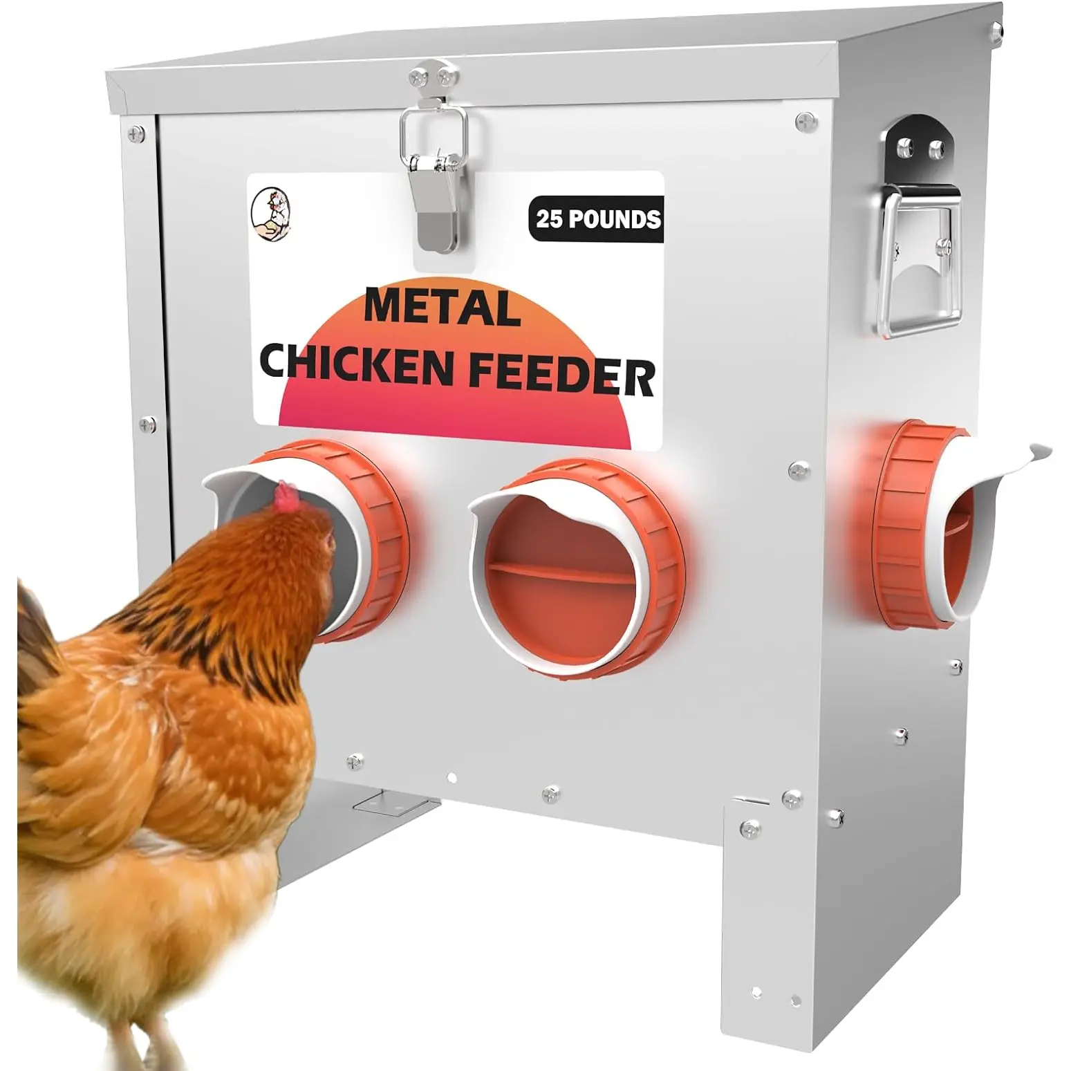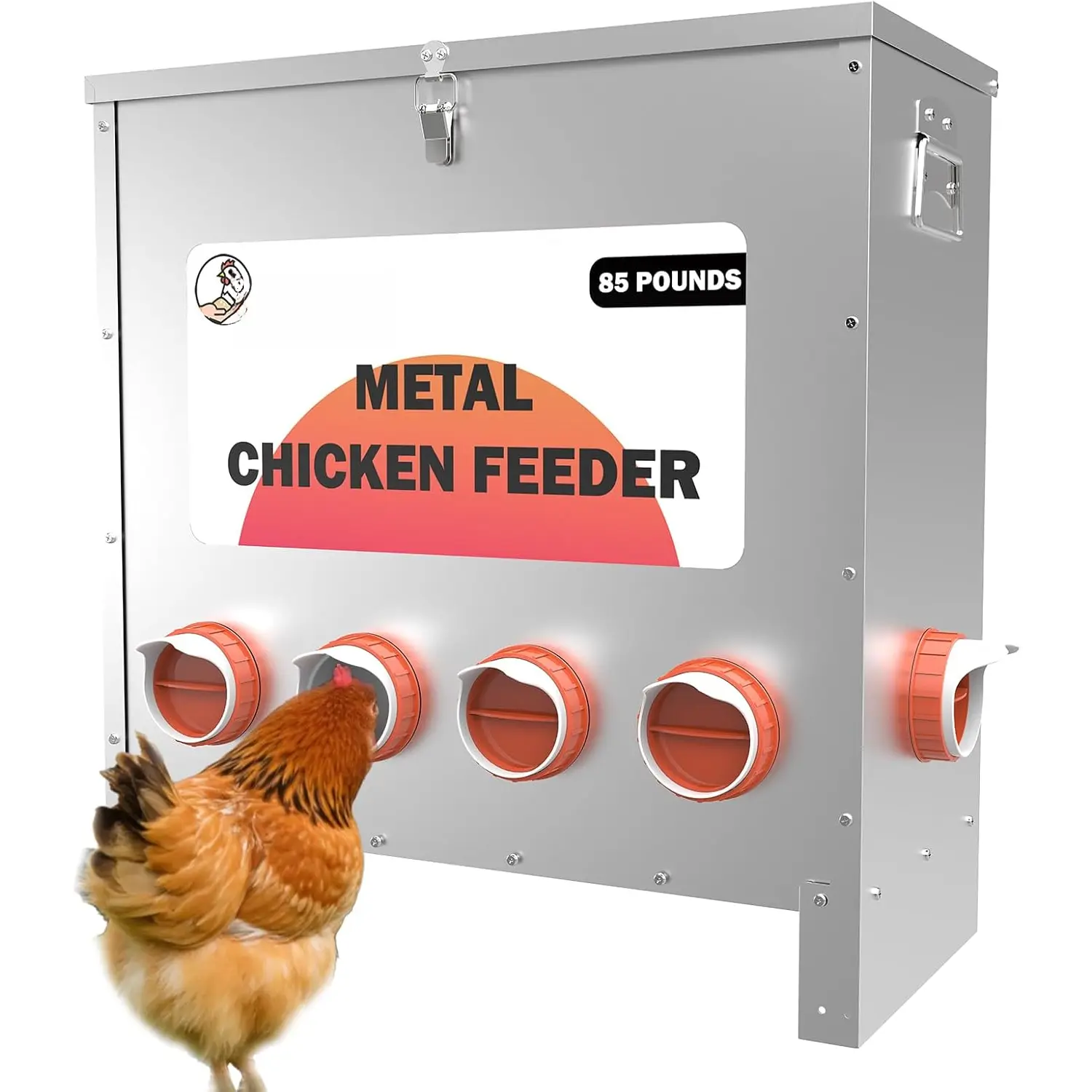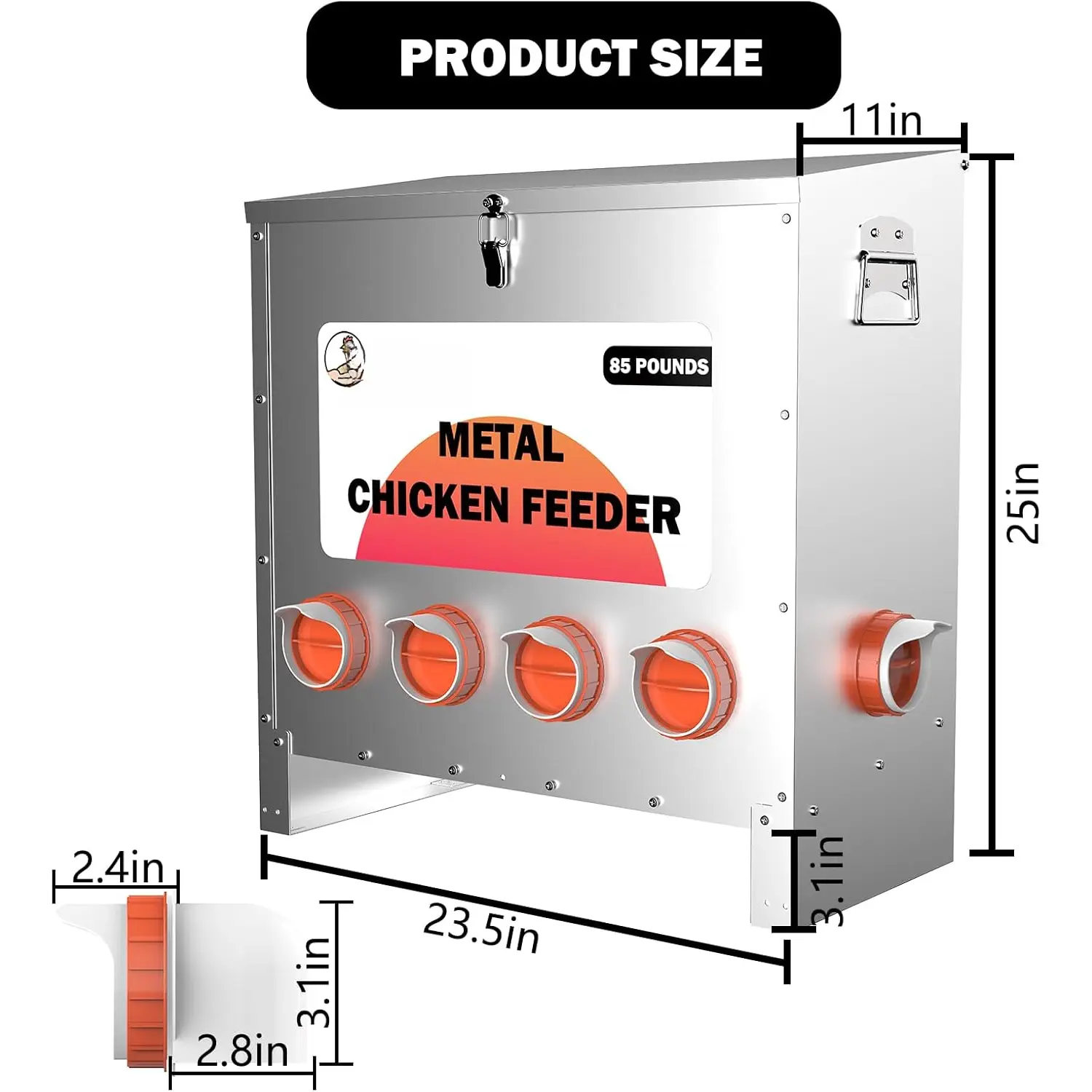 Secure Lid: The hinged lid securely fastens to the feeding box, keeping the feed protected from and contaminants, ensuring the and well-being of your chickens.