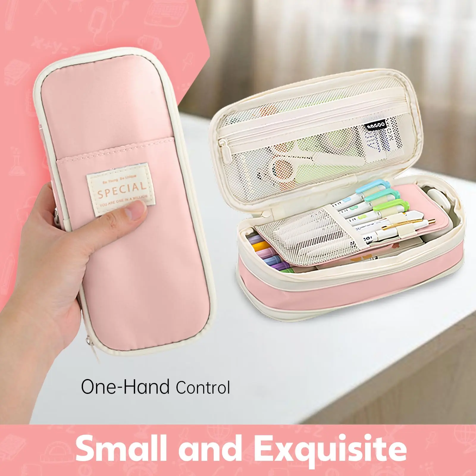 ◆[High Capacity] Bigger size to storage 20cm rulers, great to store 60-90 pens; 5 slots with mesh pocket, it also provides mesh zipper Pen bag to store small stationery to prevent falling out; Dimensions: 8.66 x 4.13 x 2.56in (21.5*7*9cm);
