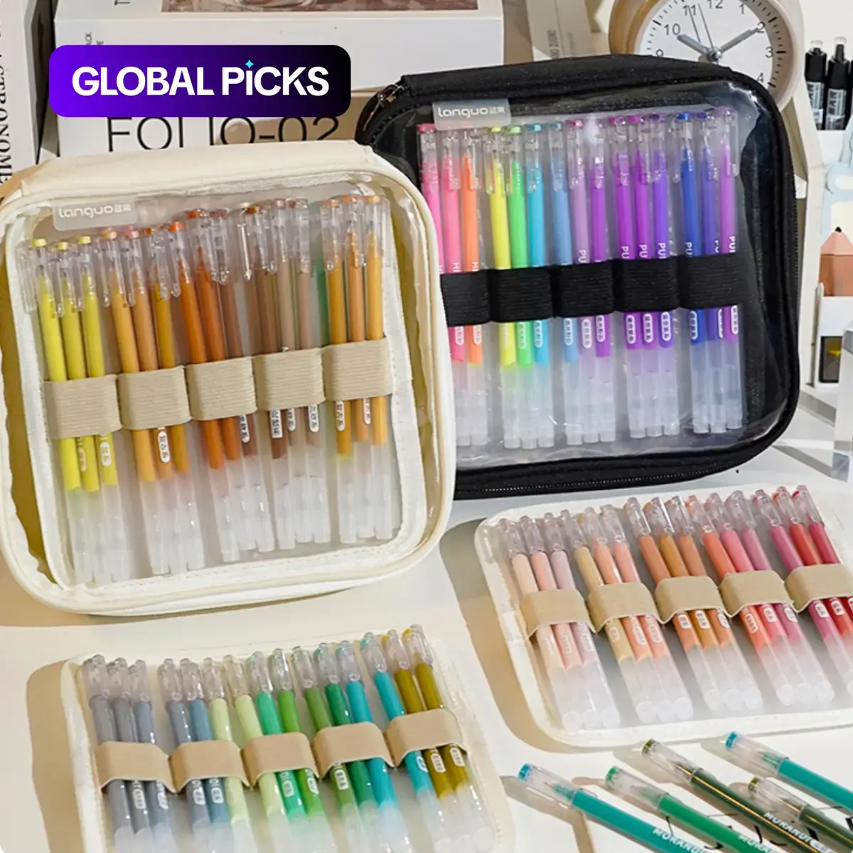 @Anben Trading Languo pen cases holds 90 regular Languo pens or 60 plus style pens. Available in black or beige #pencase #colortok #artsupplies #languo #pencilcase