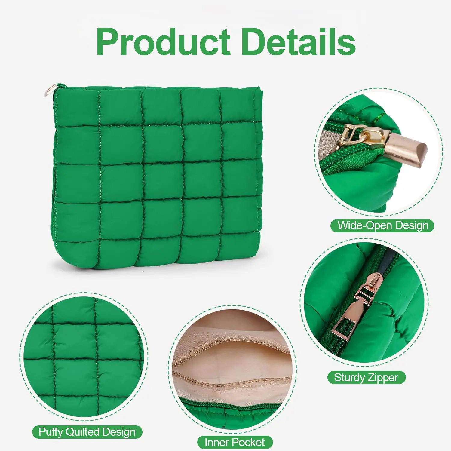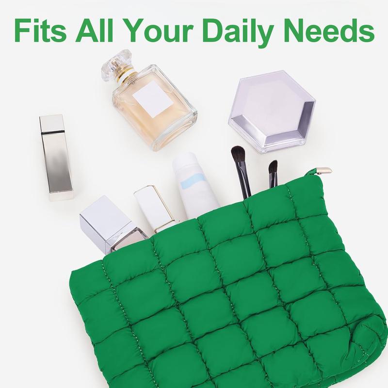 Stylish Design: Puffy quilted makeup bag with a cute puffer design, perfect for storing and organizing cosmetics and toiletries.