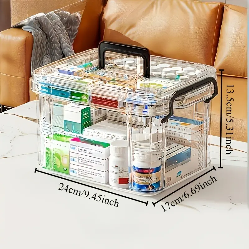 This medicine box is a practical storage solution for medical supplies. Its large capacity and transparent design make it a convenient choice. Store various medical items effortlessly with this box. 🏥