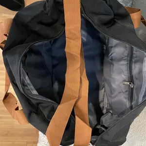 Nice duffle bag for traveling has a spot to slide the bag into your carry on luggage handle. Nice touch. Fabric feels like backpack material. Will do the job for vacation. Lots of space.