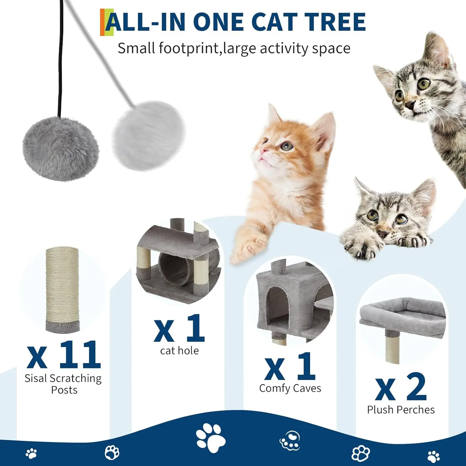 ·Multi-Level Cat Paradise:This thoughtfully designed cat tower features multiple elevated platforms with gradual step-up spacing, making it effortlessly accessible for cats of all ages and sizes. The sturdy construction with reinforced anti-tip straps ensures complete stability, even when your feline friends get playful. Each level offers comfortable resting space while encouraging healthy climbing activity that satisfies your cat's natural instincts.