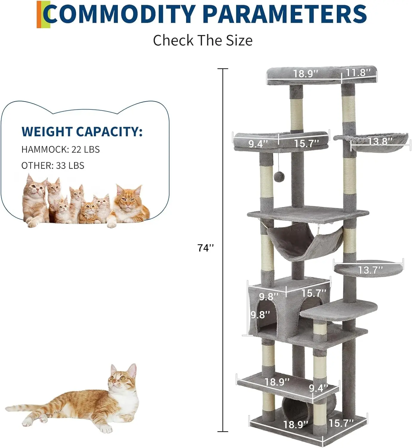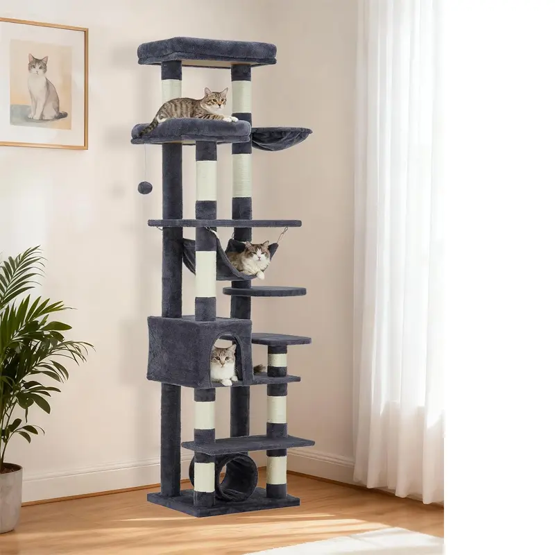 74" Large Cat Tree for Big Cats,Multi-Level Tower with Scratching Posts, Condo, Perches, Hammock, Tunnel & Feeding Station74" Large Cat Tree for Big Cats,Multi-Level Tower with Scratching Posts, Condo, Perches, Hammock, Tunnel & Feeding Station74" Large Cat Tree for Big Cats,Multi-Level Tower with Scratching Posts, Condo, Perches, Hammock, Tunnel & Feeding Station74" Large Cat Tree for Big Cats,Multi-Level Tower with Scratching Posts, Condo, Perches, Hammock, Tunnel & Feeding Station