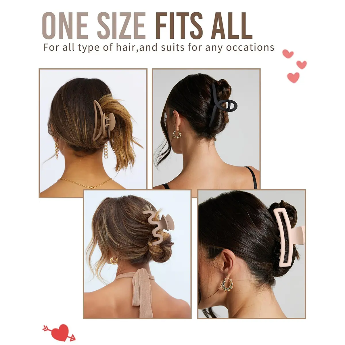 ·PACK OF 5 HAIR CLIPS - 5PCS Large Claw Hair Clips are easy to use and ready to switch between different styles The stylish hair clips are perfect for ladies and girls of all ages and can be gifted to mothers, wives, sisters, friends, and yourself.