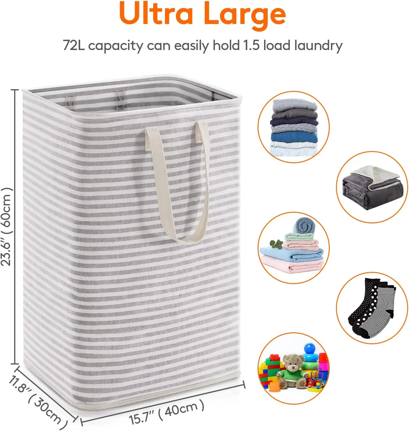 ·Ultra Large: The laundry hamper measures 15.7 x 11.8 x 26.4 inches (L x W x H) with a capacity of 80L and 2 of set which easily contains 1.5x2 loads of laundry. It can hold a lot of items such as dirty clothes, wet towels, sheets, etc.