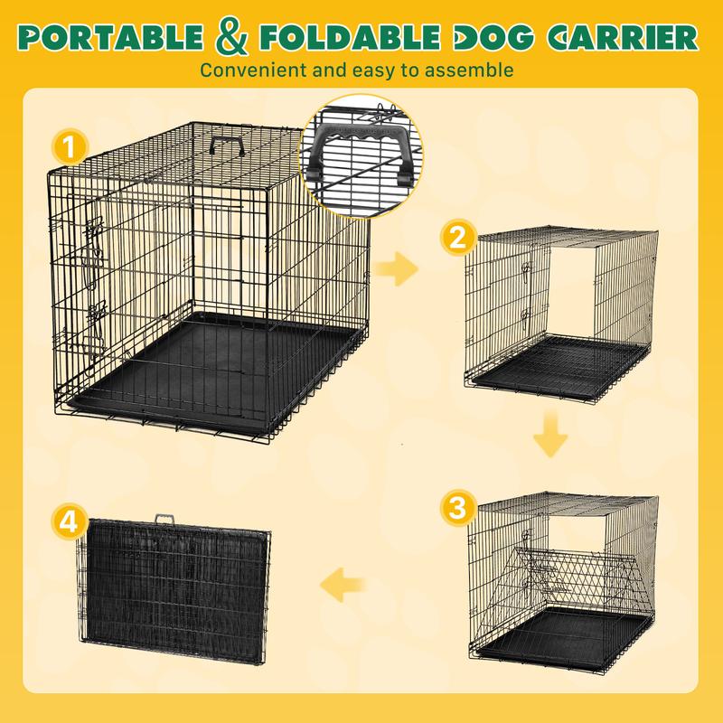 ·EASY TO CARRY: Our dog crate is collapsible, giving you the flexibility to take it with you wherever you go. Folded for space-saving, easy storage, it's perfect for traveling, camping, or any on-the-go adventures with your furry friend.