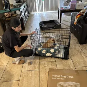 ·EASY TO CARRY: Our dog crate is collapsible, giving you the flexibility to take it with you wherever you go. Folded for space-saving, easy storage, it's perfect for traveling, camping, or any on-the-go adventures with your furry friend.