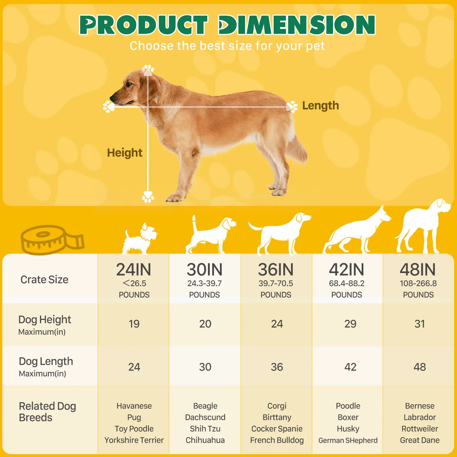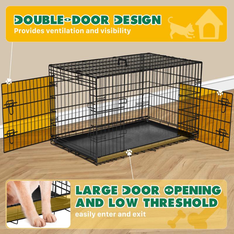 ·ENHANCED SECURITY: With rounded edges, smooth rounded corners and matching accessories, our dog crates prioritize safety. Thick metal mesh and double doors with 2 heavy-duty sliding bolt locks not only prevent your dog from escaping, but also provide optimal protection for your pet