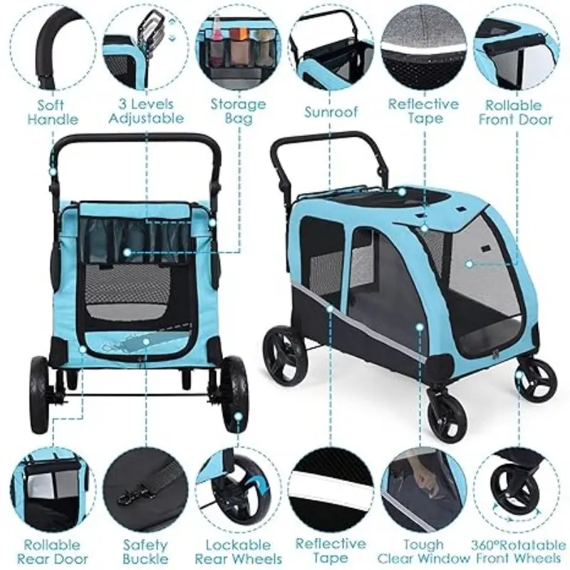 This dog wagon and carriage are versatile, suitable for various occasions. The stroller is a practical choice for dog owners looking for a reliable and spacious option for their large dogs. It combines functionality with style, making it a great addition to any pet owner's toolkit.