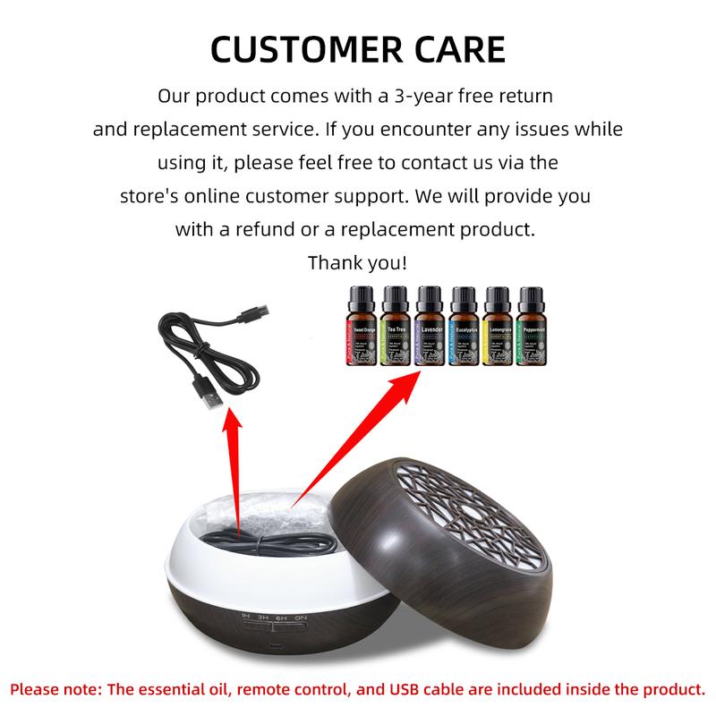 Large 550ml Essential Oil Diffuser  Auto Timer, 7 LED Colors, Remote Control & 6  Oils