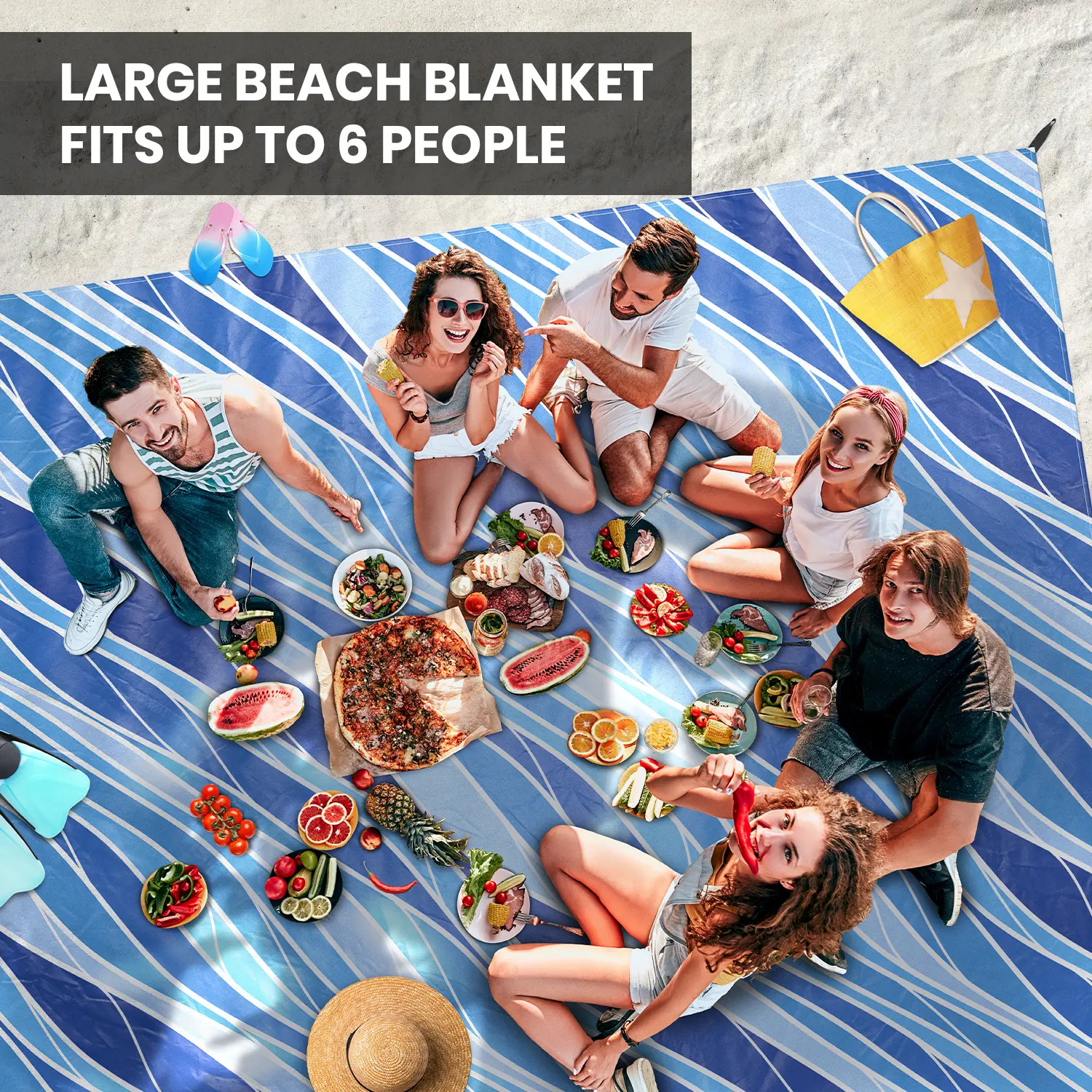 ·STANDARD SIZE FITS UP TO 6 PEOPLE: Measuring 8' x 7', our standard sized sand blanket fits between 4 to 6 people, kids and adults alike. Perfect for beach dates, vacation, and picnics