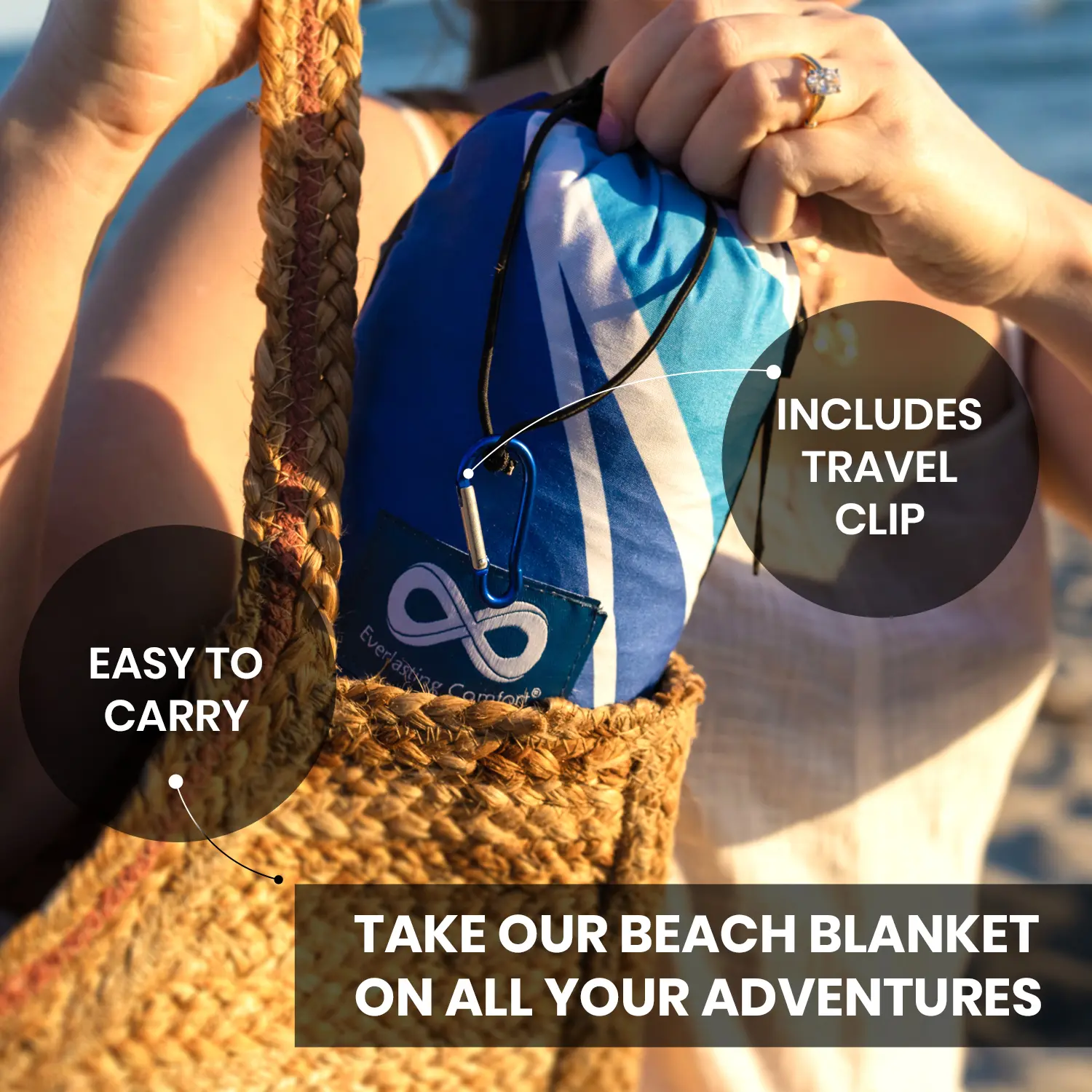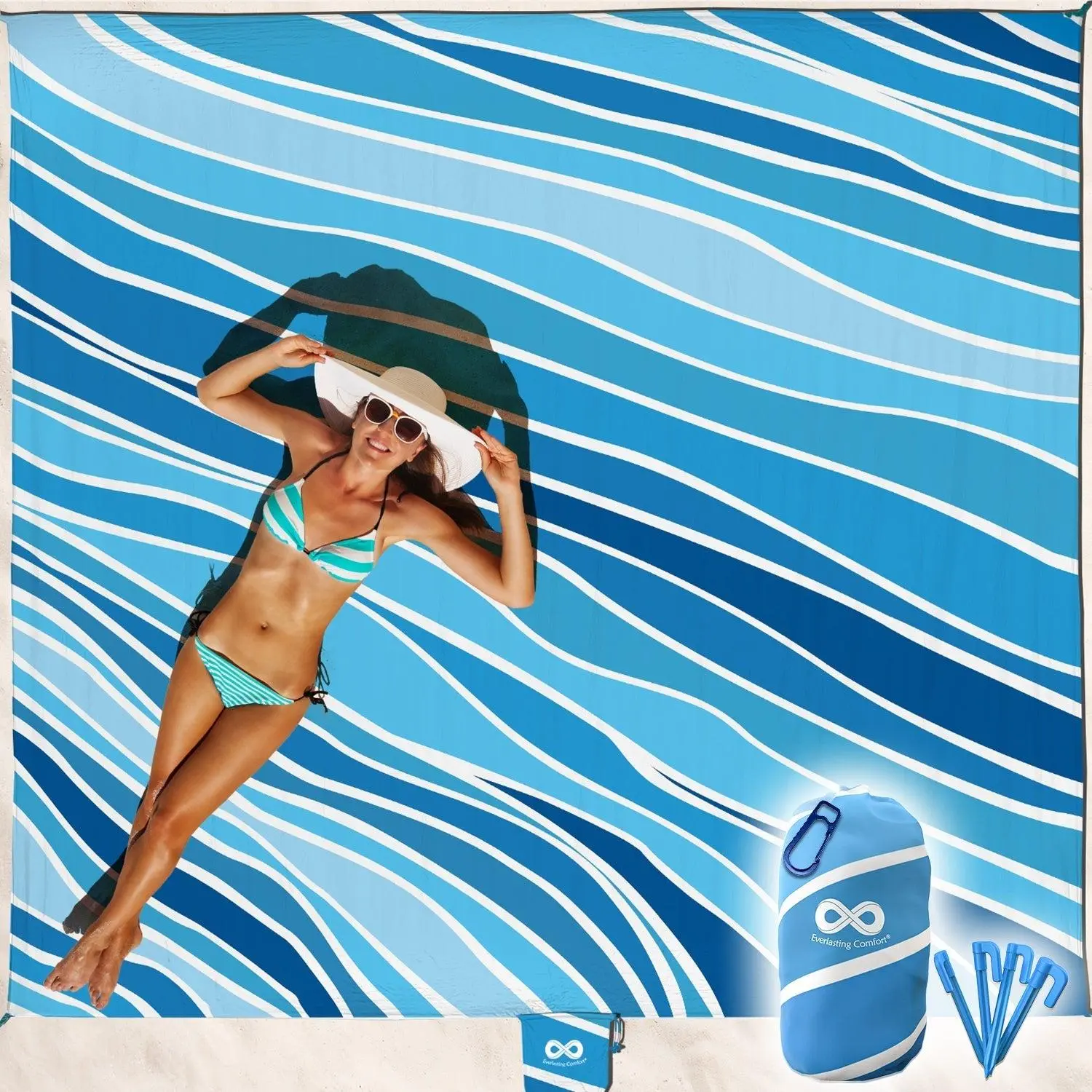 ·PORTABLE: Weighing a mere 1.5lbs, our oversized beach blanket is easy to carry and store. Included storage bag and carrying clip easily attaches to backpacks, purses, and even your pocket
