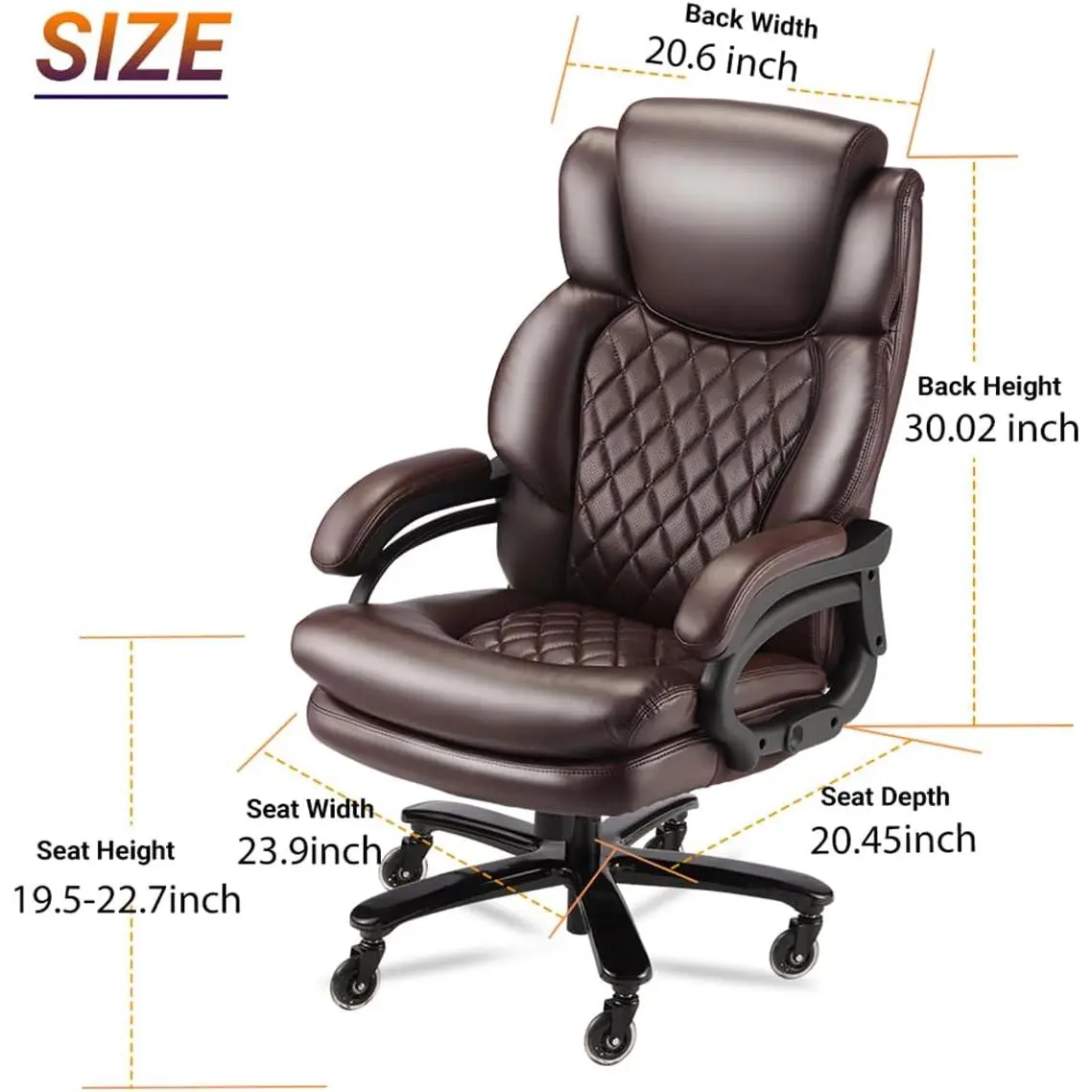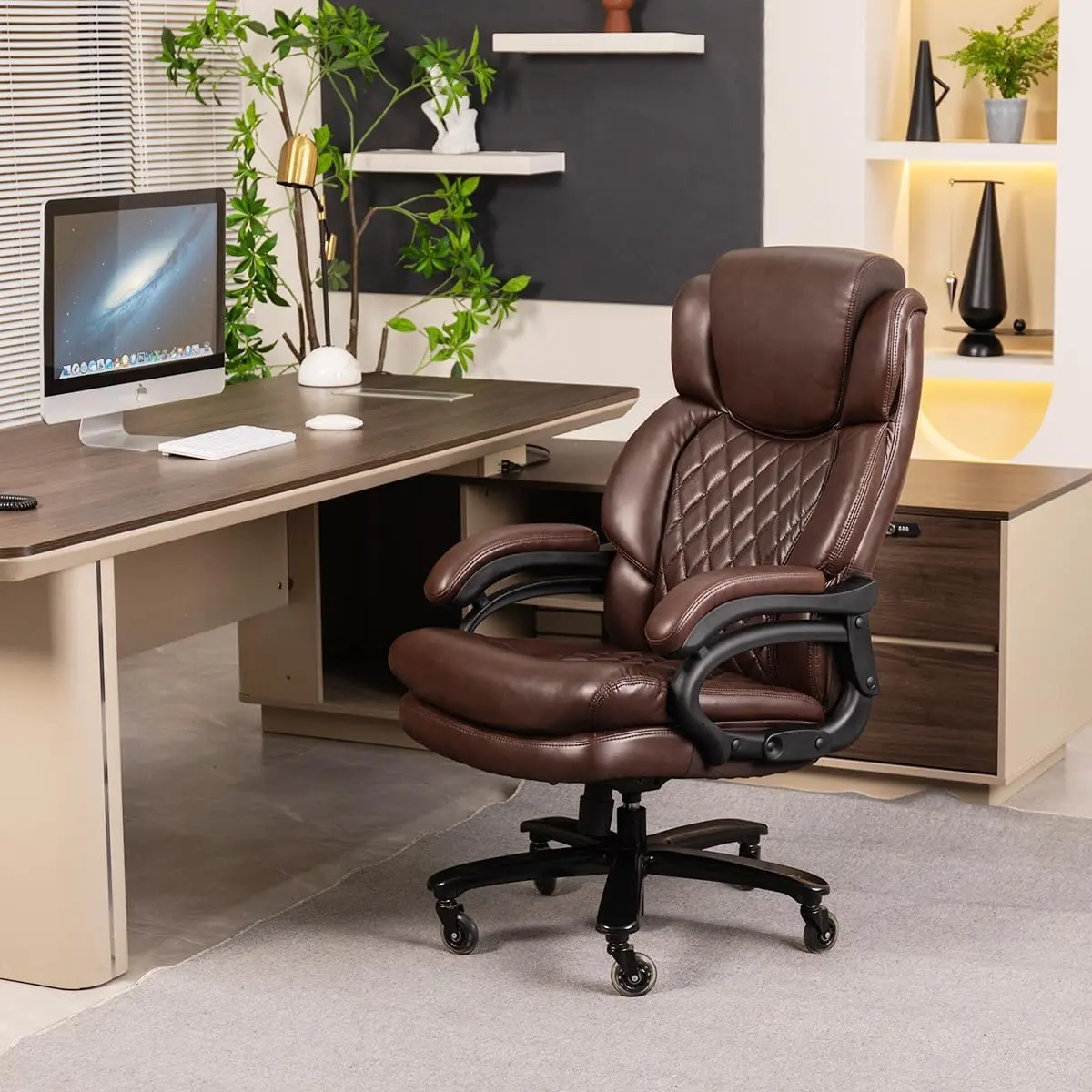 5. ARCH 800lbs Large Size Executive Office Chair for Heavy People Big and Tall Office Chair with Adjustable Headrest 360 Swivel Desk Chair with Heavy Duty Casters Computer Home Office Chairs (Brown)