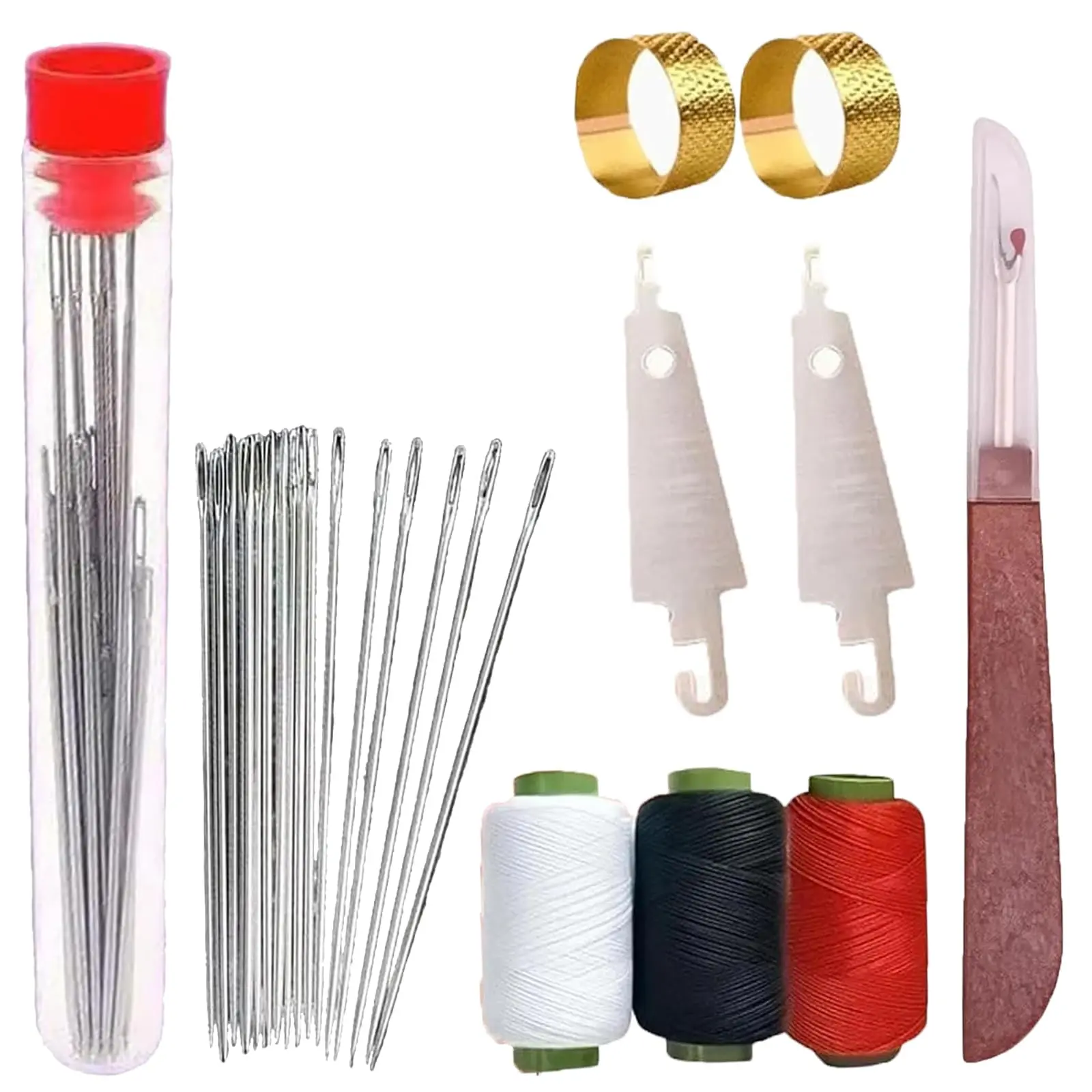 Complete Set: This comprehensive set includes a thimble, needle threader, needle, syringe, thread tips, and a seam ripper. Its compact and portable design easily fits in a sewing bag or carry-on bag, perfect for those unexpected repairs.