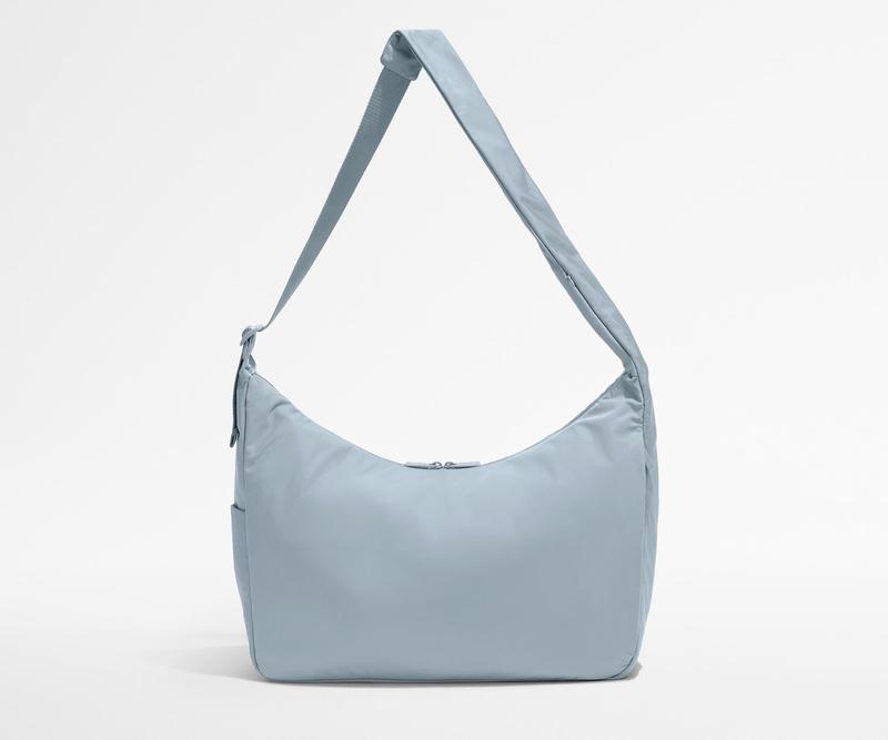 Designed to fit a lot, and with just enough support for anything you put inside. Weighing in at just under a pound, this large crossbody bag’s softly structured shape drapes well when worn, and has just enough support to keep its contents securely contained. Speaking of contents, it can fit a lot: there’s a 16" laptop sleeve, an extra inner zip pocket, an interior water bottle pocket, another side pocket that can hold sunglasses, a small water bottle, or a phone, and a hidden pocket on the adjustable strap that fits earbuds, lip balm, or a credit card. It’s organized, versatile, and easily packs down when needed, making it a perfect crossbody bag for getting there—and then getting around. It's a big lift for a light bag.
