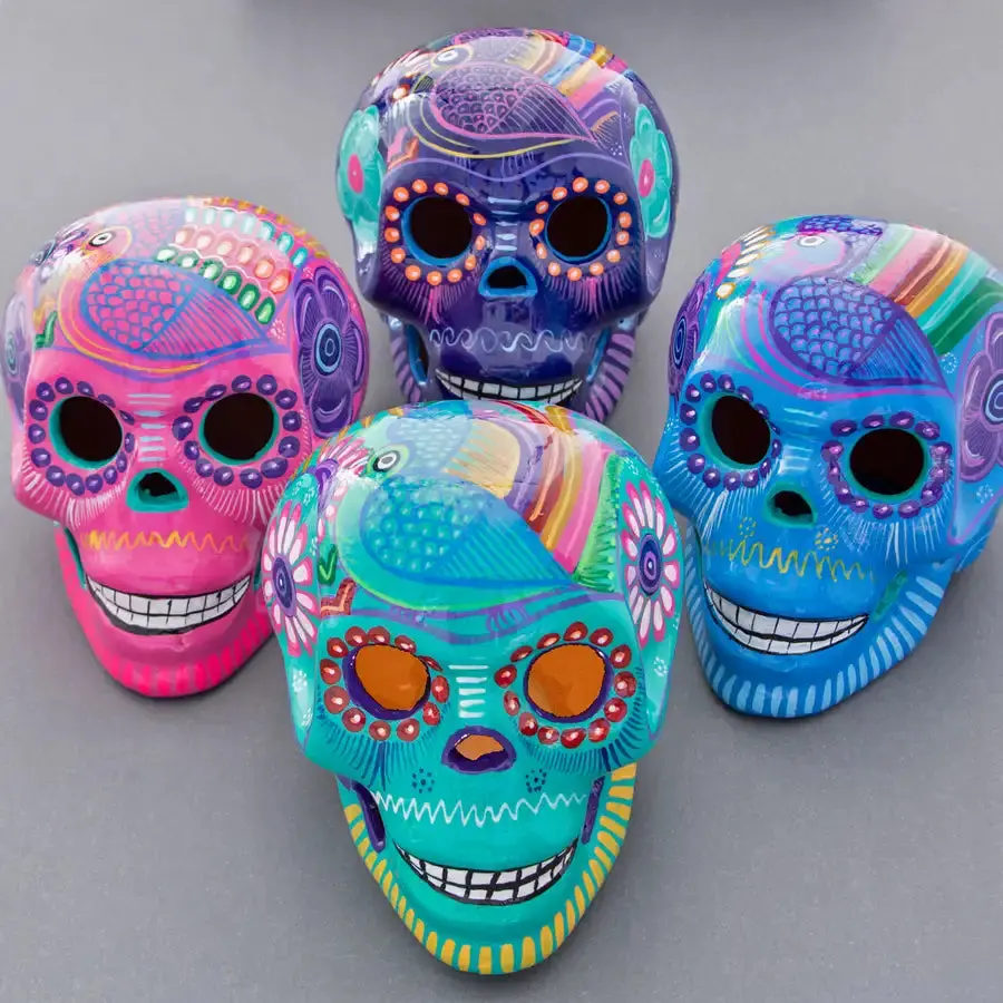Handcrafted and Painted Clay Day of the Dead Sugar Skulls100% Made in Guerrero, Mexico