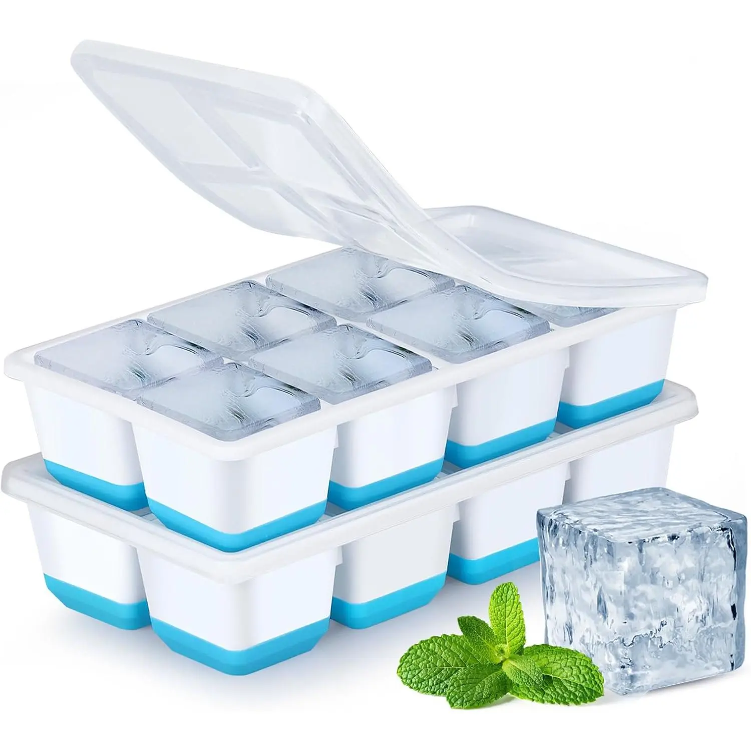 Compact and Easy to Store: The ice trays for freezer have a tight-fitting removable lid and leak-proof structure to spills when filling. The stackable design makes them stack easily and neatly in the freezer, which can save a lot of space.