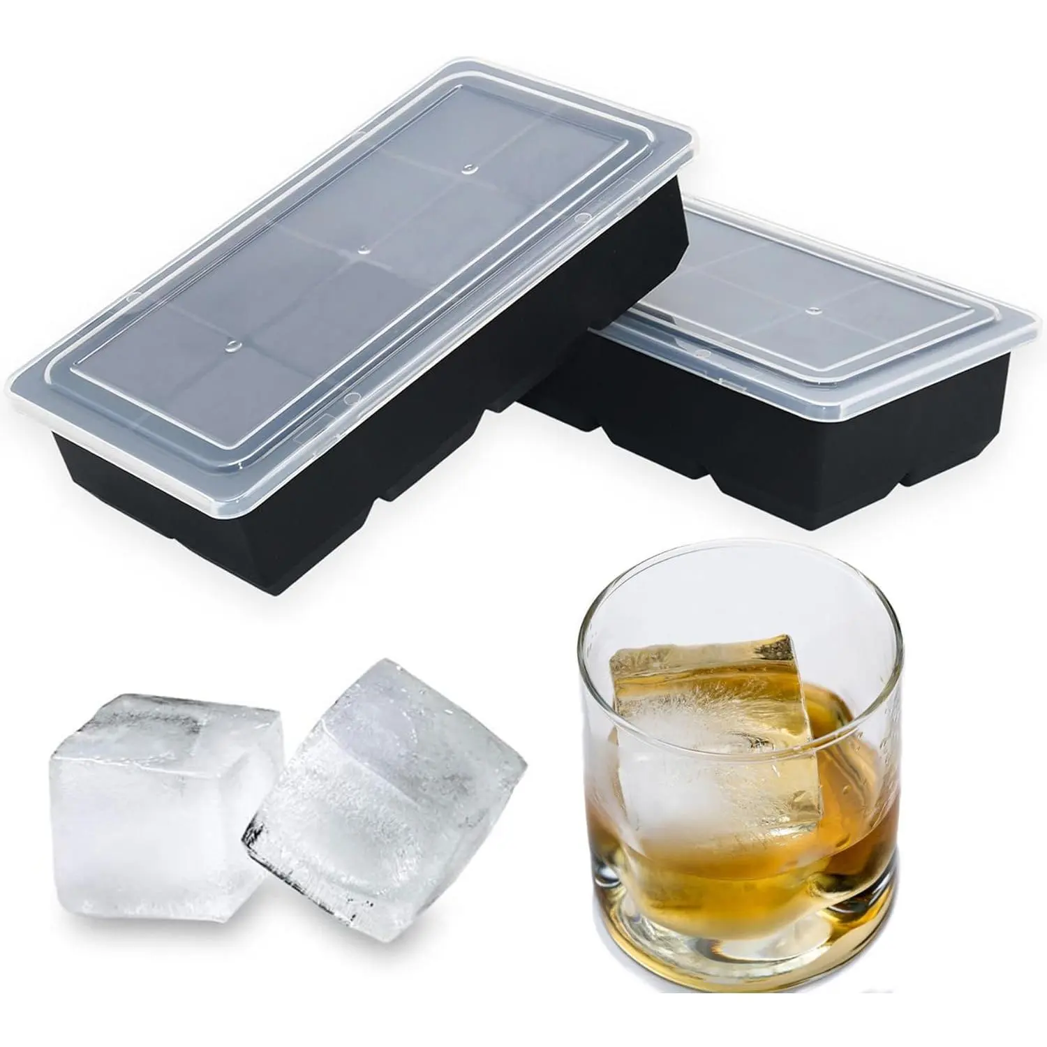 GUARANTEE:If for any reason you aren't satisfied with our large ice trays for freezer with lid,we will provide a refund or replacement without any questions asked! This makes your purchase risk-free. So try our ice mold combo sets and chill your drink with ice that lasts
