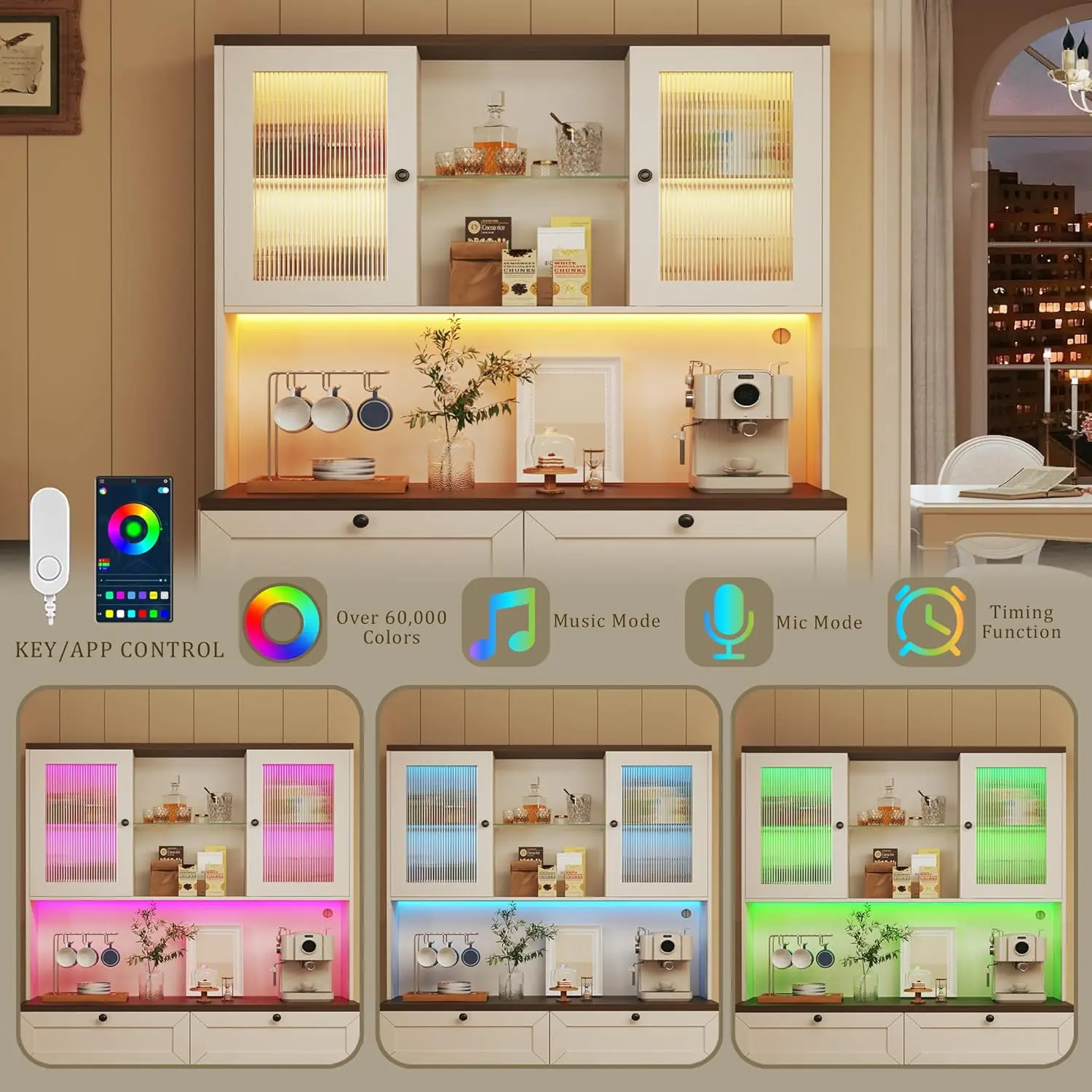 ·Stunning RGB LED Lights:Features vibrant RGB LED lighting with 60,000+ color options and music-sync mode—control it effortlessly via app or switch. Instantly transform your pantry into a stylish, mood-matching centerpiece, even in low-light spaces.