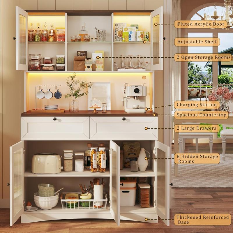 ·Durable & Elegant Design:Made from premium solid wood with reinforced joints for long-lasting use. Features 5 impact-resistant acrylic doors that display and protect your items beautifully. Ideal as a pantry, coffee hutch, bar cabinet, or buffet for your kitchen, dining, or living room.