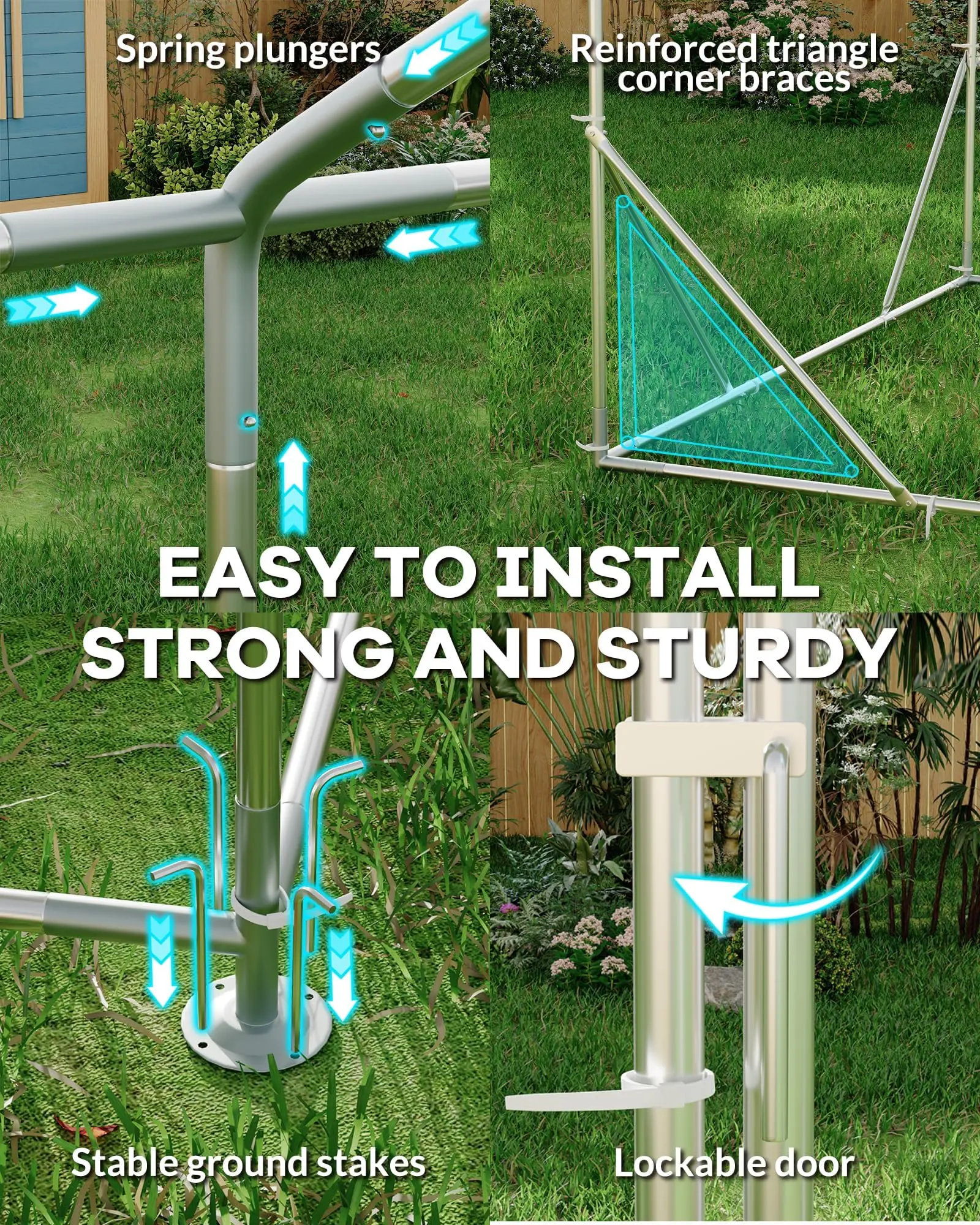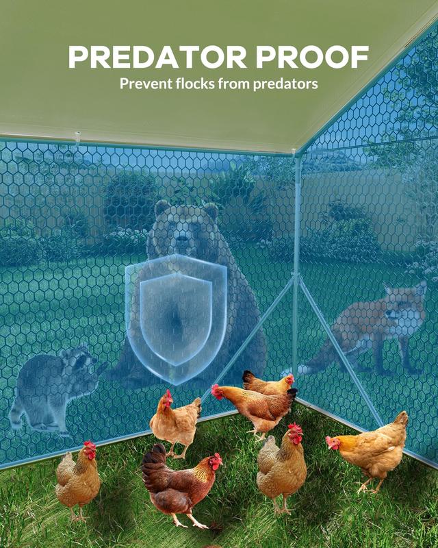 · Sturdy Dog Run Structure: Built with heavy-duty galvanized steel pipes and reinforced hexagonal wire mesh, this durable frame resists weather and impacts, ensuring long-lasting safety for your pets in a secure outdoor dog run