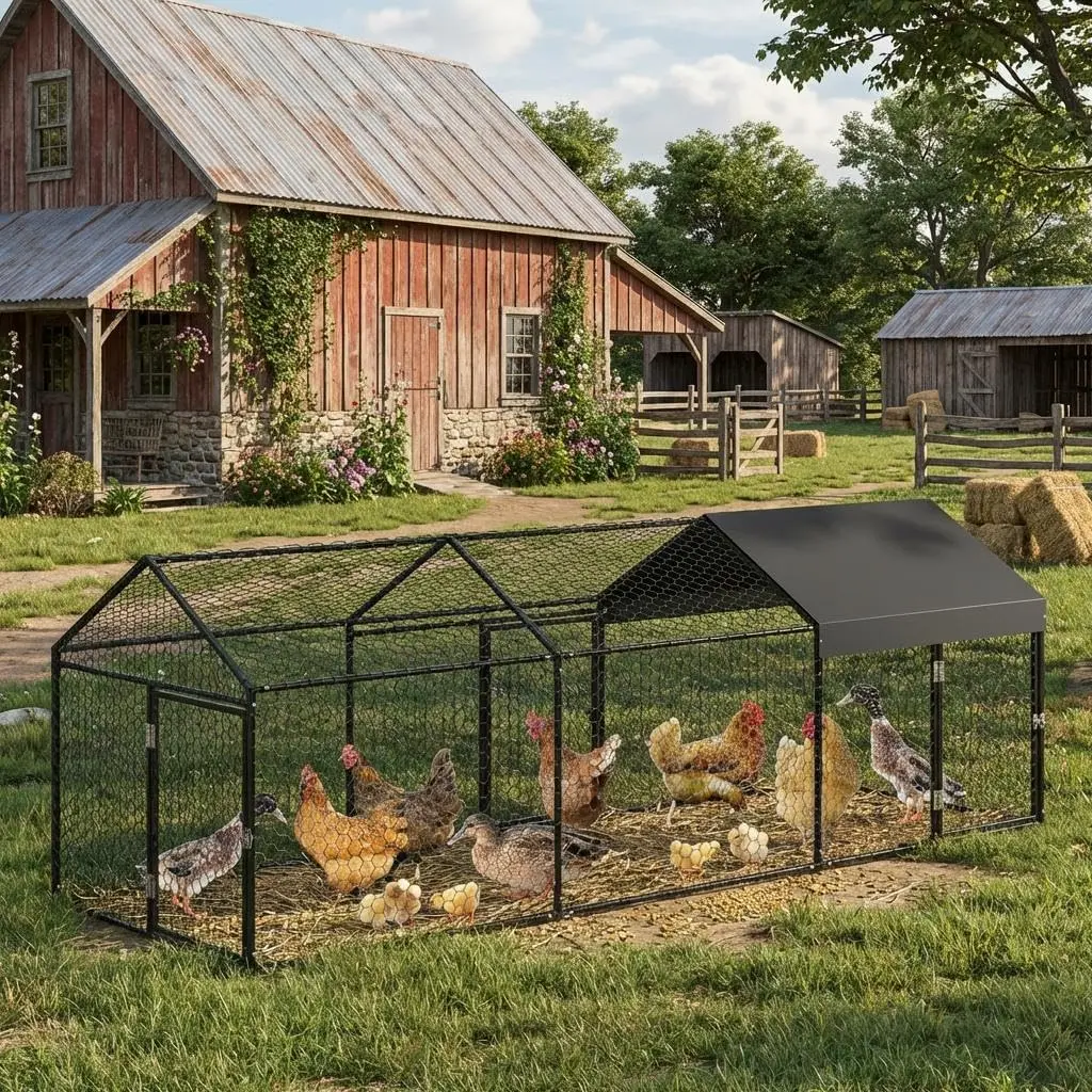 ·【Predator-Resistant & Secure Build】 Constructed with heavy-duty metal frames and reinforced wire mesh, the coop provides full protection against foxes, raccoons, and other predators. Ideal for rural and suburban settings where wildlife intrusion is a concern. Regularly inspect mesh and locks for damage to maintain security over time.