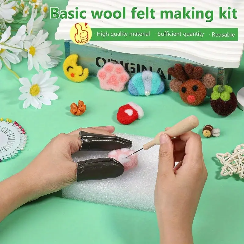 ·Basic Wool Felt Tools Kit: You can easily start your felting craft with the provided needle felting kit with 1pcs wooden felting tool, 1pcs awl, 1pcs snips, 2pcs finger protectors, 60 pcs felting needles, 1pcs foam pad, 1 pcs wood handle tool with 8 needles on it (total 68 pcs feling needles).