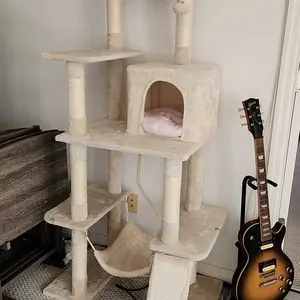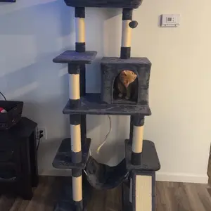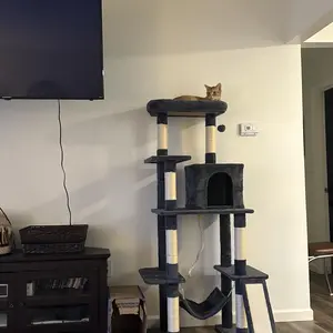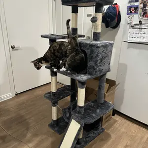 Every cat needs a cat tree. Try this multi-purpose cat tree! All platform and supporting posts are made from solid CARB P2-compliant particleboard and covered with soft plush, which gives your cat extra stability and comfort. The sisal ropes are good things for cats to exercise and sharpen their claws. The top perch with raised edges gives your cat a good spot to enjoy the scenes. The cat tree has detailed instructions and necessary tools for assembly. This is not only a cat tower but also a piece of good furniture in your house. We have various colors for you to choose from. Do not let your cat wait anymore!