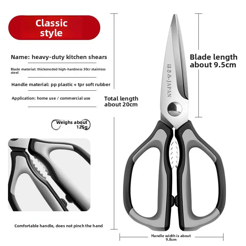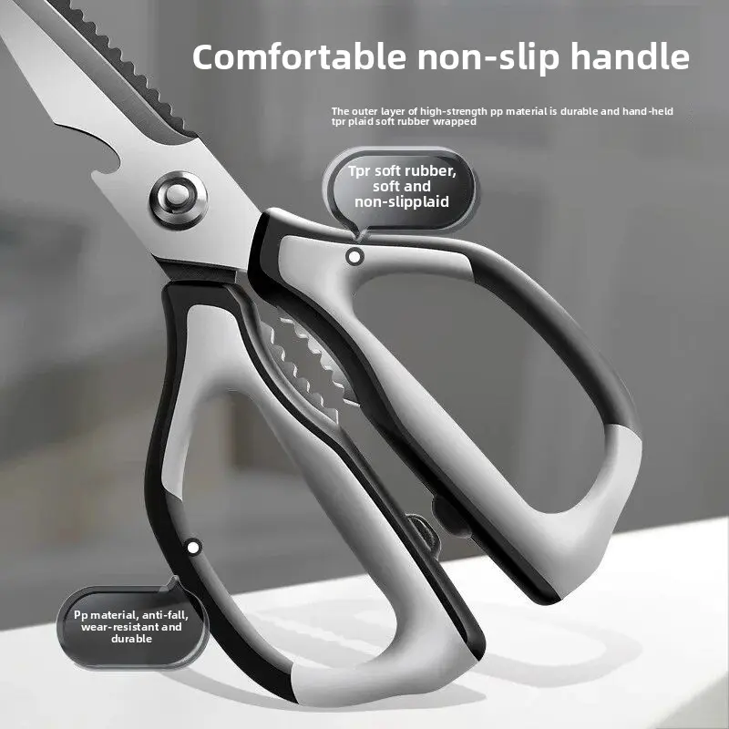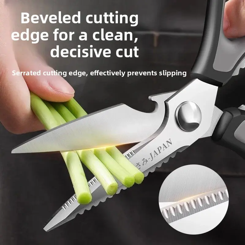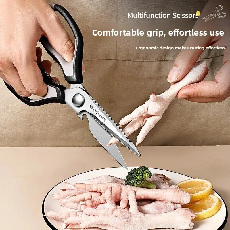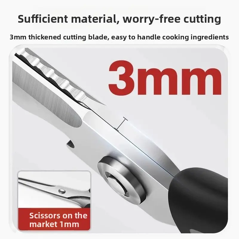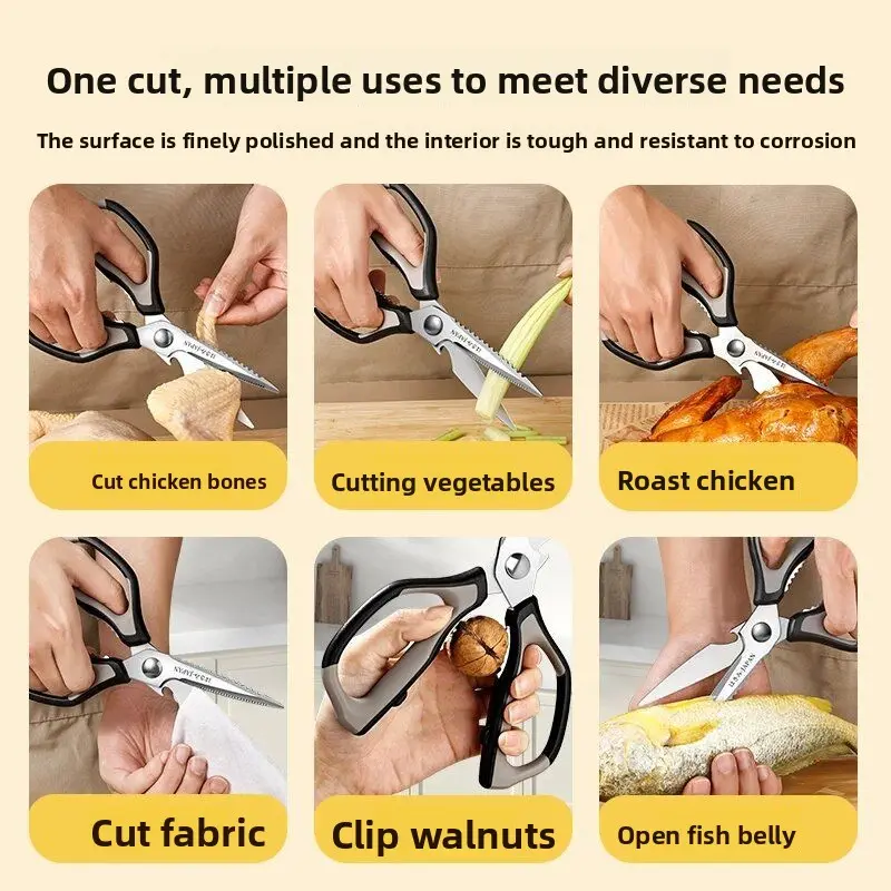 This large multifunctional kitchen scissors is a must-have for any kitchen. It is heavy duty, sharp, and durable, making it perfect for cutting chicken bones and other household tasks. 🌟