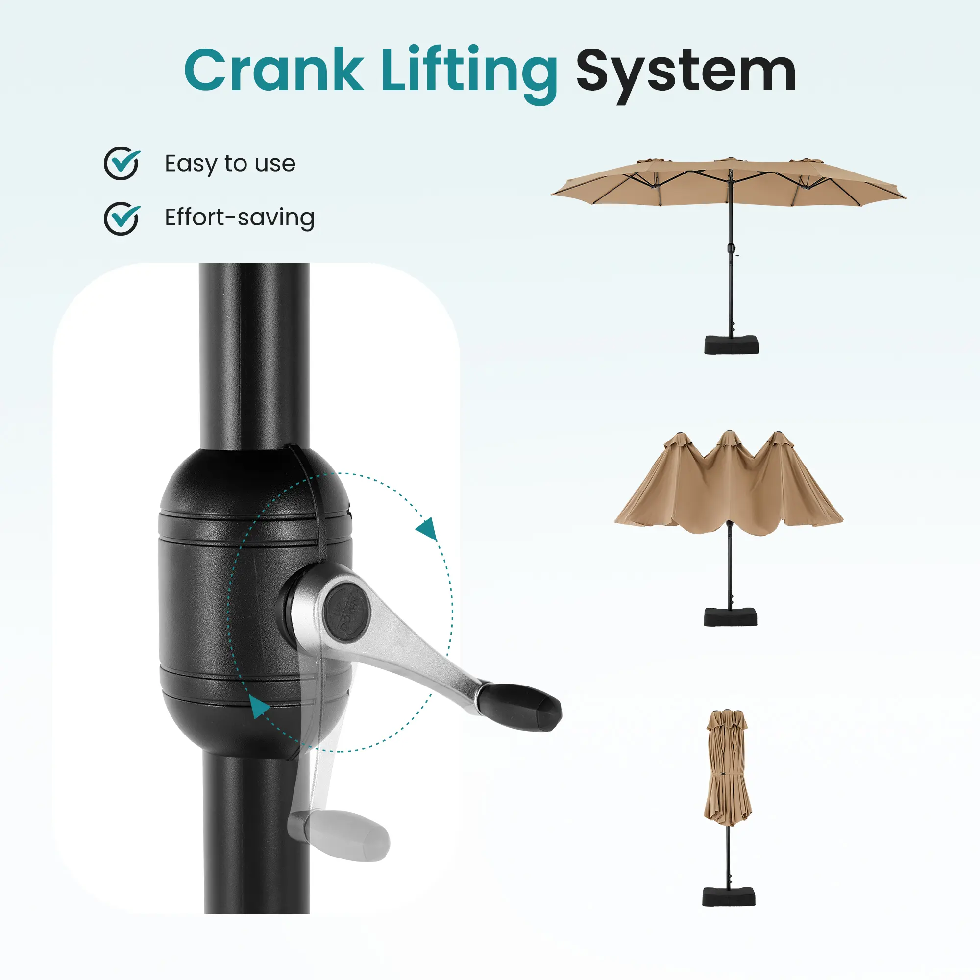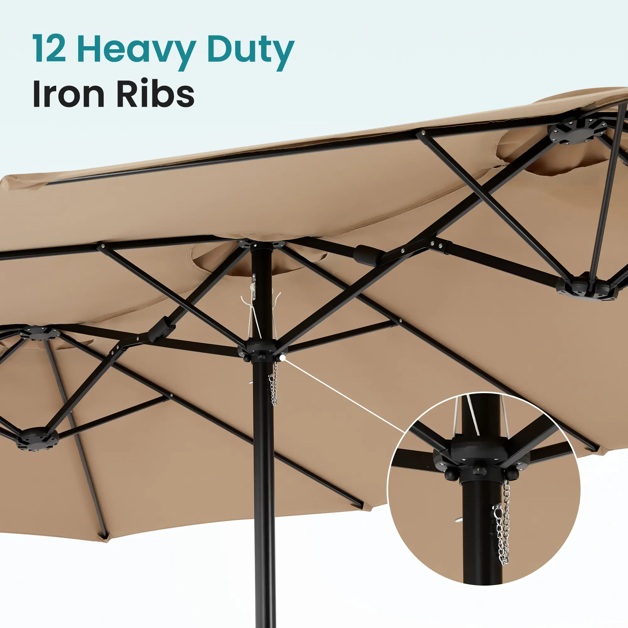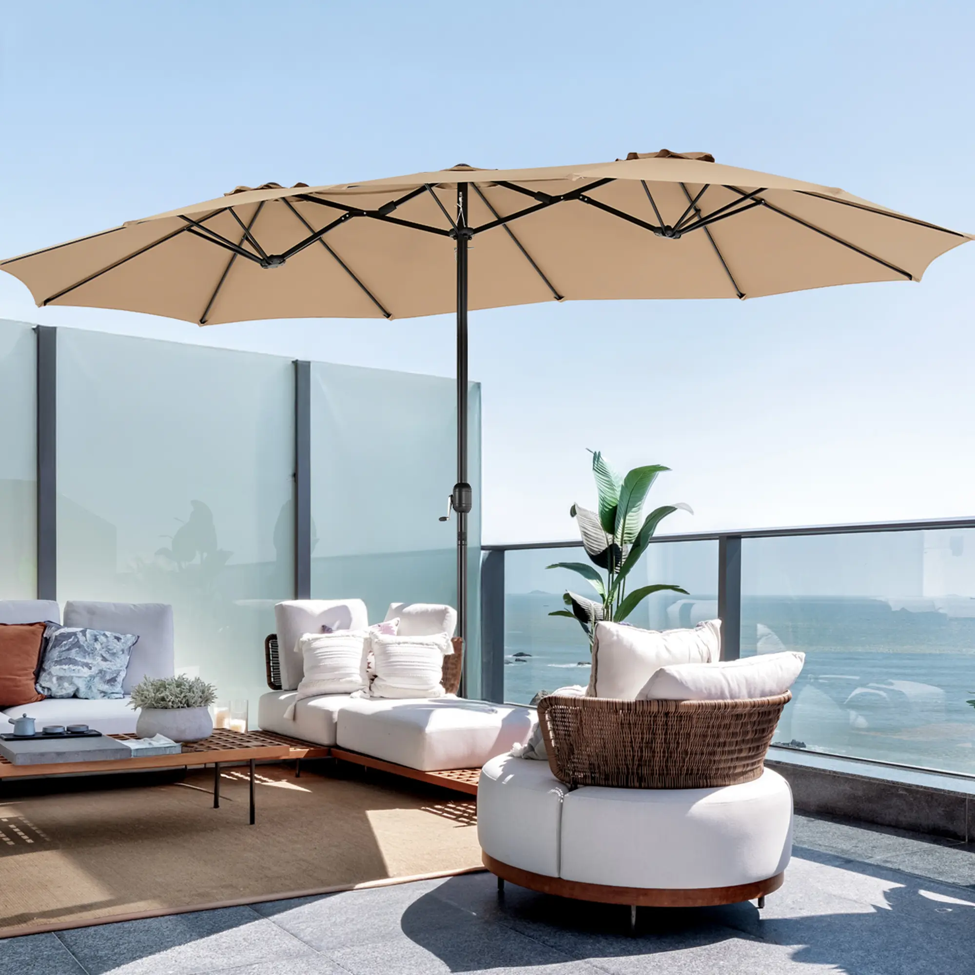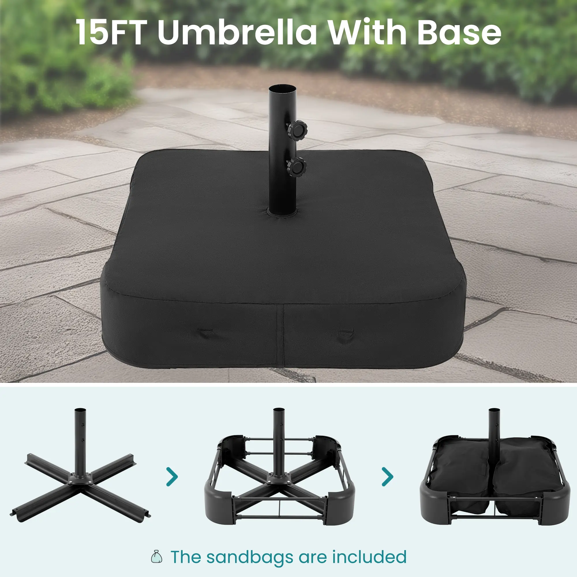 This large patio umbrella comes with a base included, making it ideal for poolside, lawn, and backyard settings. The umbrella provides ample shade for your outdoor space, ensuring comfort in various outdoor areas.