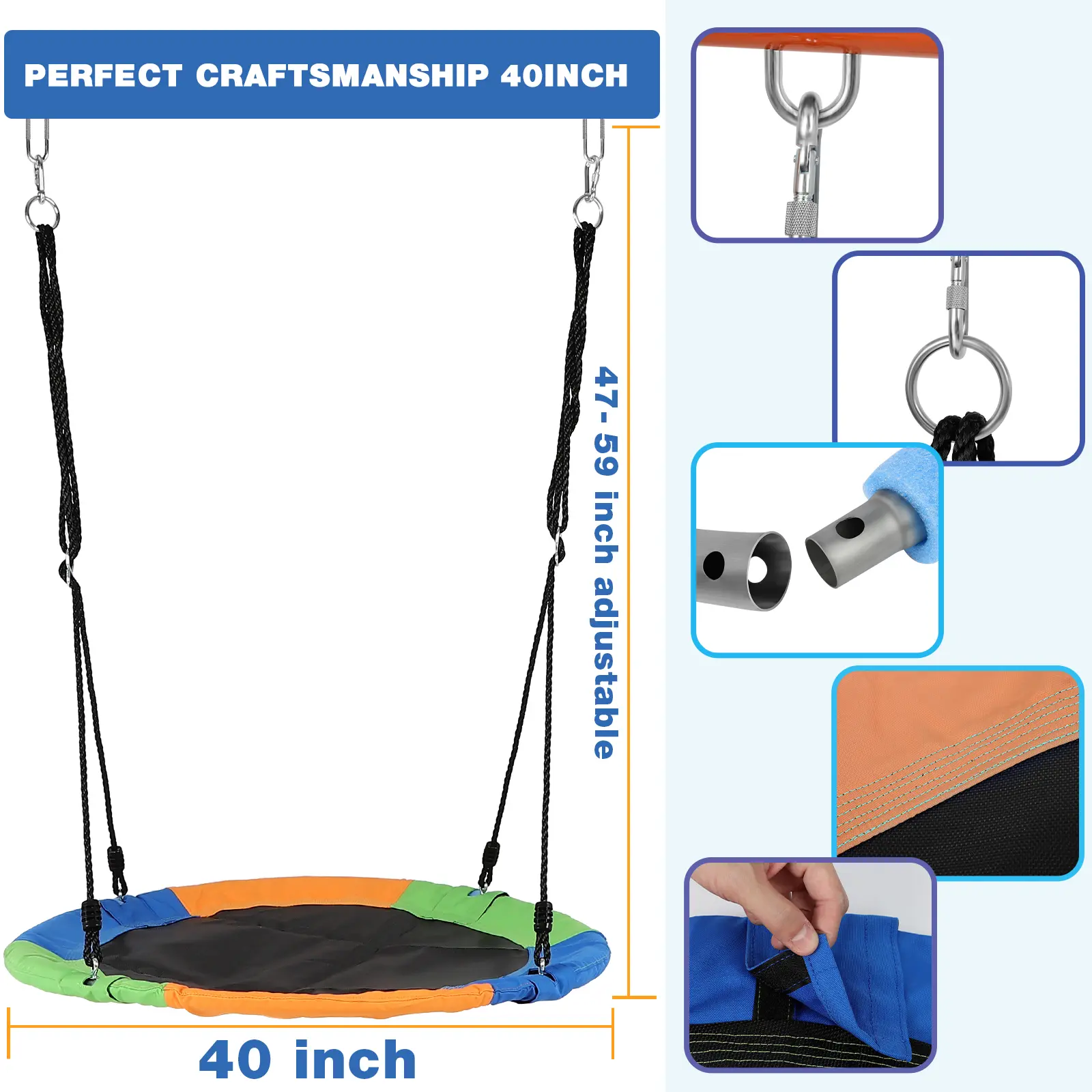·【SAFETY DESIGN 】: Rectangular platform swing with buckle design, can tightly fix the rope to keep the seat balanced, the seat is made of heavy-duty (PP) polypropylene and black oxford cloth - the rope is made of polyethylene (PE) - the steel tube frame is filled with NBR foam (about 1.6 inches thick), which is in accordance with the ASTM, CPC certified to ensure that the kids are safer in the outdoor platform swing so the parents are more relaxed, and the kids parents can feel relieved, the kids parents can be more relaxed. Parents can rest assured that their children can enjoy more fun.