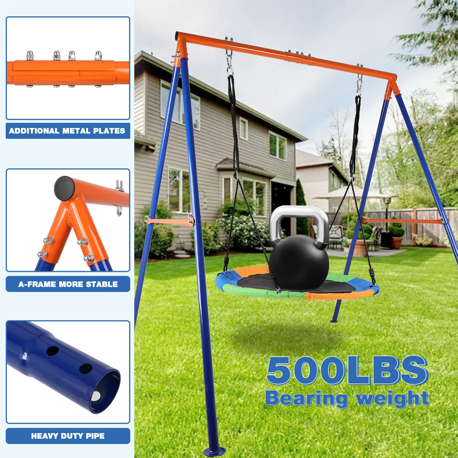 ·【STURDY LARGE PLATFORM SWING】: 60“ x 32” steel frame, tightly woven fabric seat, fits 5 kids or 2 adults. Weighing in at 700 lbs, this is a great platform swing. Makes it safer for your child to swing for long periods of time.