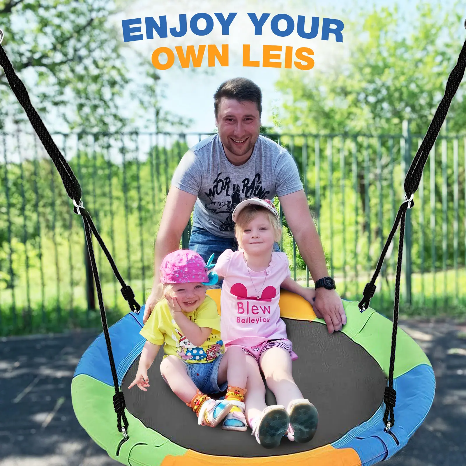 ·【DURABLE SWING ROPE】: Extra thick adjustable rope made of high quality PE webbing with metal rings for secure attachment. Our swing set includes 2 tree straps. No need to buy extra straps or other accessories