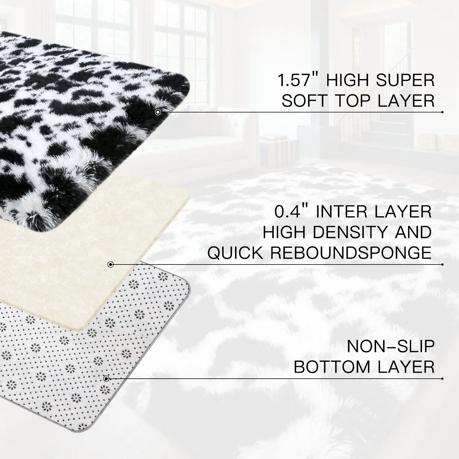 γSuper Soft FeelingγThe Area Rug is crafted from premium fiber material, offering a luxurious and velvety texture that effectively absorbs dust. Its middle layer features high resilience sponge to reduce foot pressure and enhance overall softness, making it perfect for lounging or playing games with family.