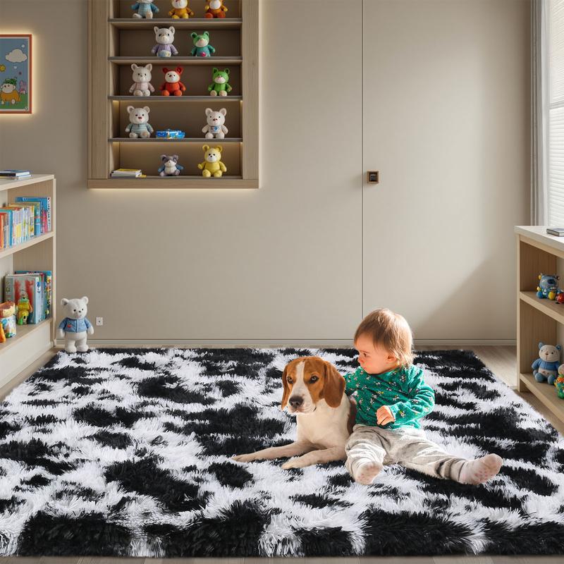 5. FAMVAL Large Size Plush Rugs Big Fluffy Area Rug Non-slip Soft Shaggy Carpet Mats for Livingroom Bedroom Nursery Home Decor Cow Print Christmas gifts