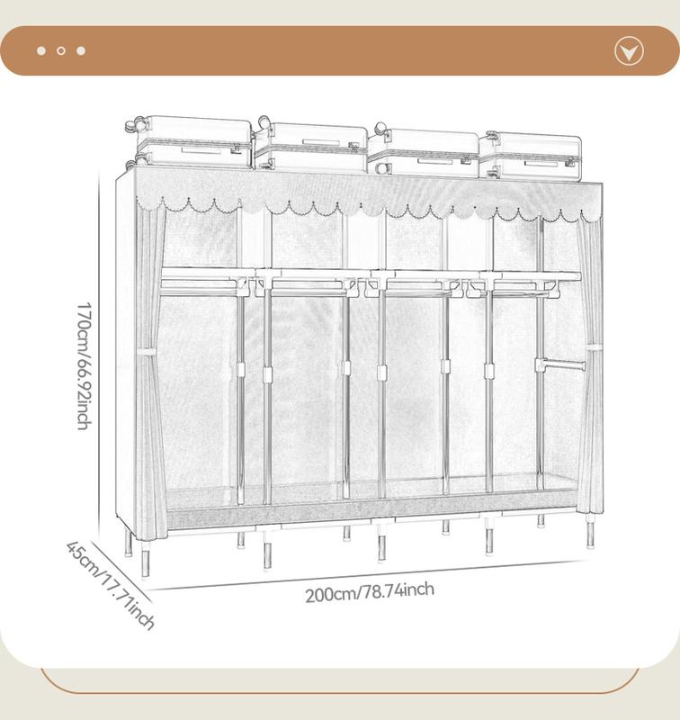 • Includes a thick fabric cover with zipper closure. It shields clothes from dust, featuring an elegant petal curtain head design. Keep your garments clean and protected effortlessly.