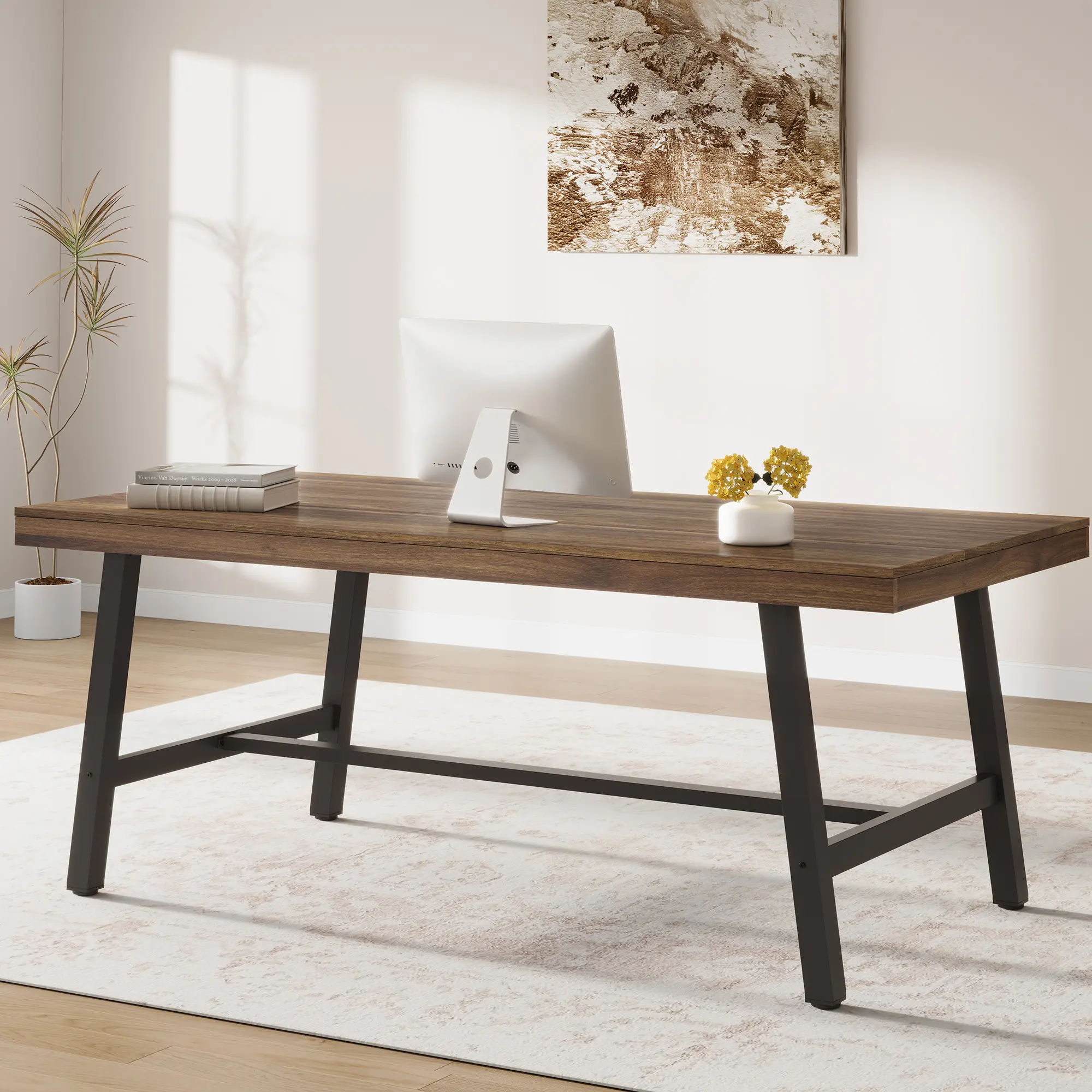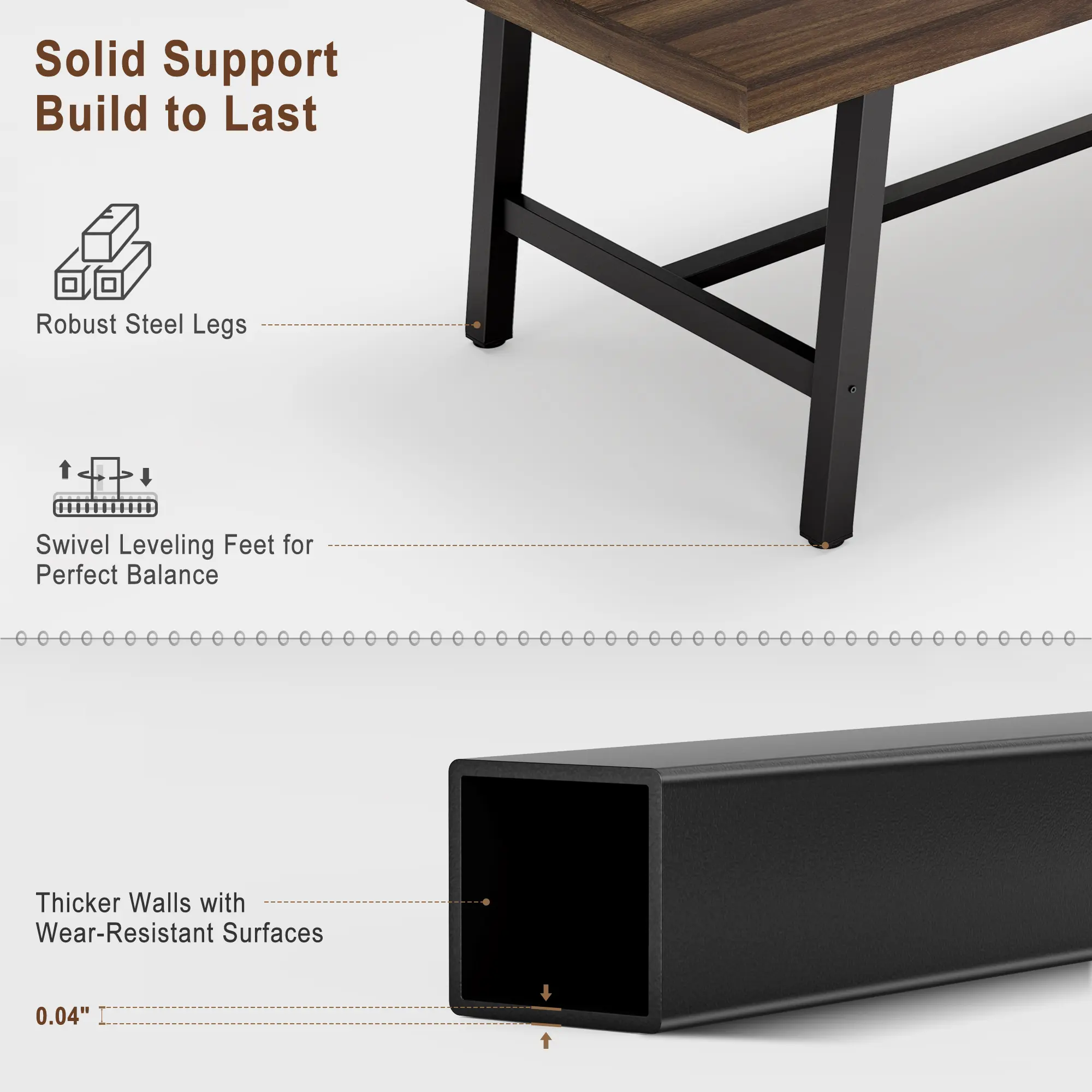 ·2.Robust and Stable Construction: The dinner table features sturdy iron legs and a trapezoidal frame structure that provides exceptional stability and support, allowing you to confidently place dishes, drinks, and decor on the table for reliable everyday use
