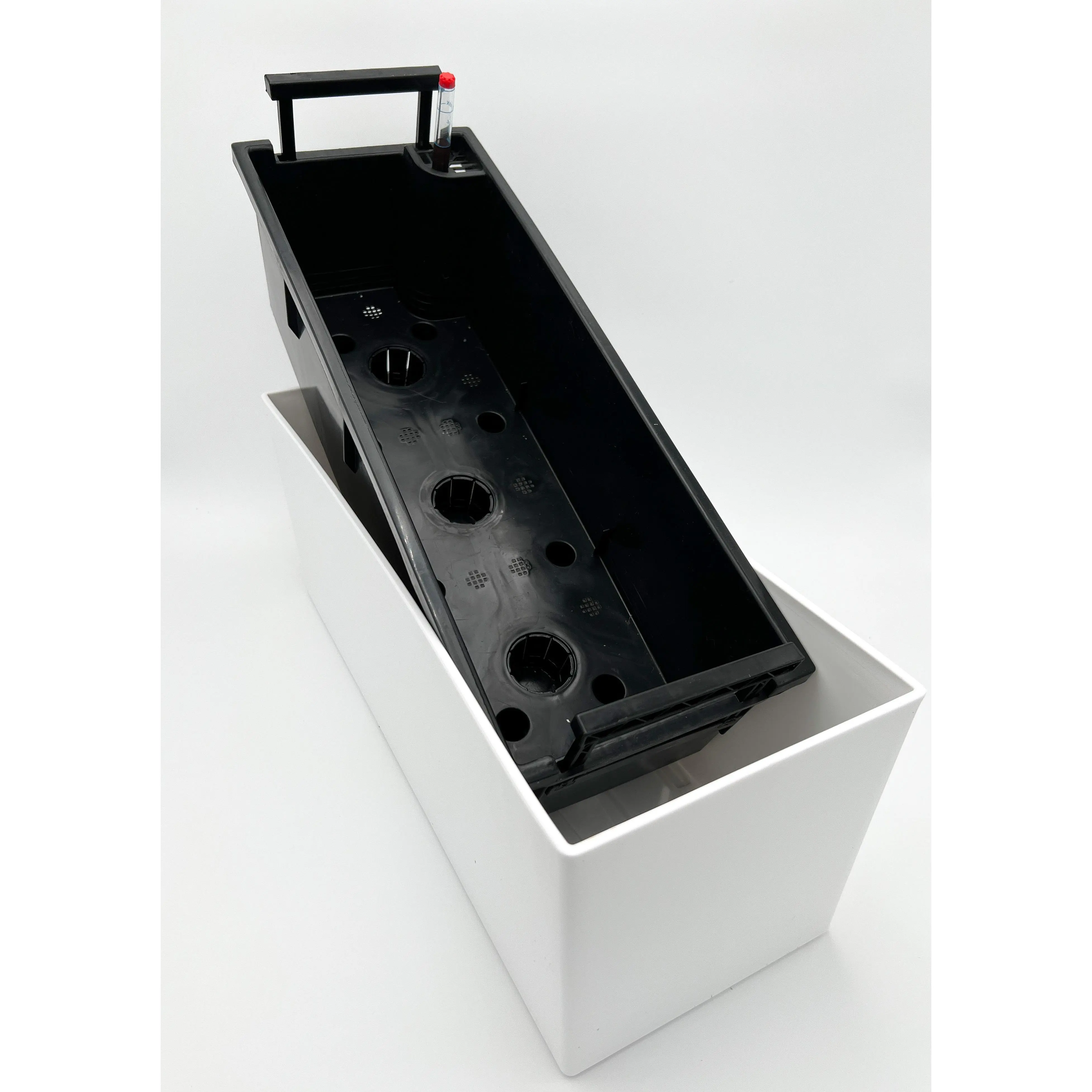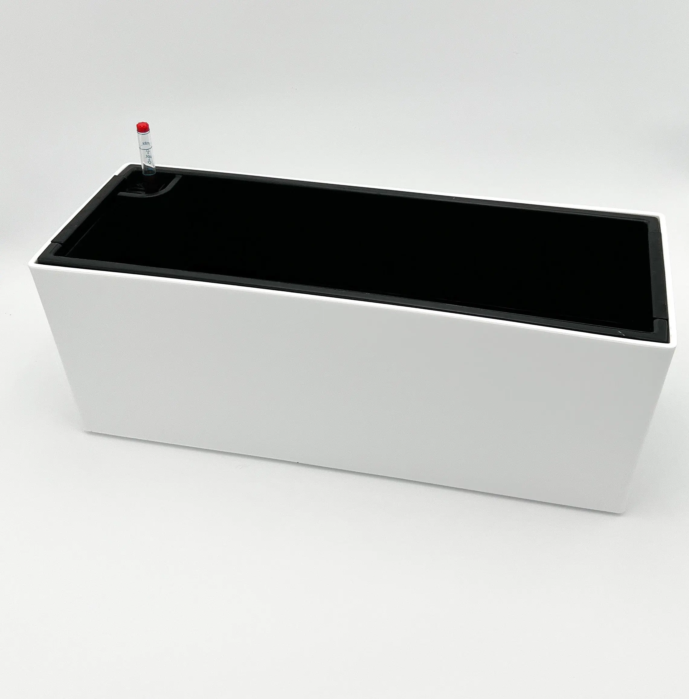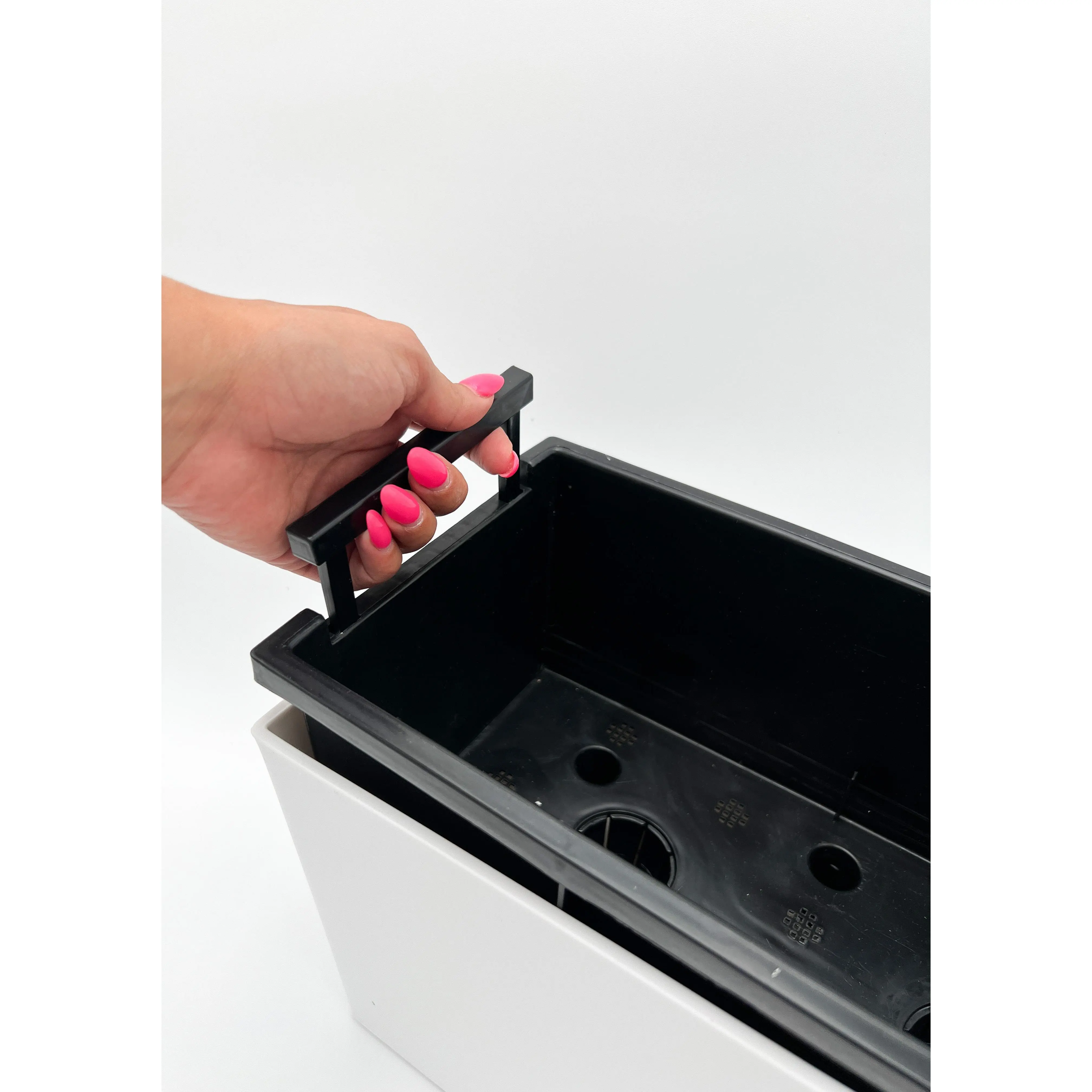 Self-watering pots hold a reservoir of water and include black inner net pot. These pots include an indicator which allows you to quickly see the water level without needing to lift up the plant to check. These pots help lower frequency of watering, and allow the root system will wick up water as needed. Rectangular pots are ideal for crawling plants such as Philodendron Gloriosum, Philodendron Pastazanum, Philodendron McDowell etc.
